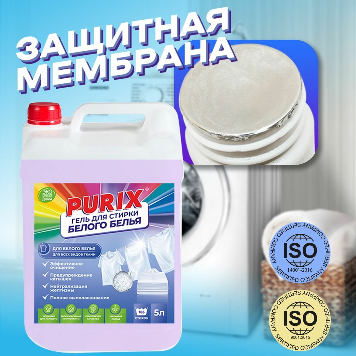 Гель для стирки белого белья Purix 5л для всех видов ткани, без хлора, гипоаллергенный интересное: