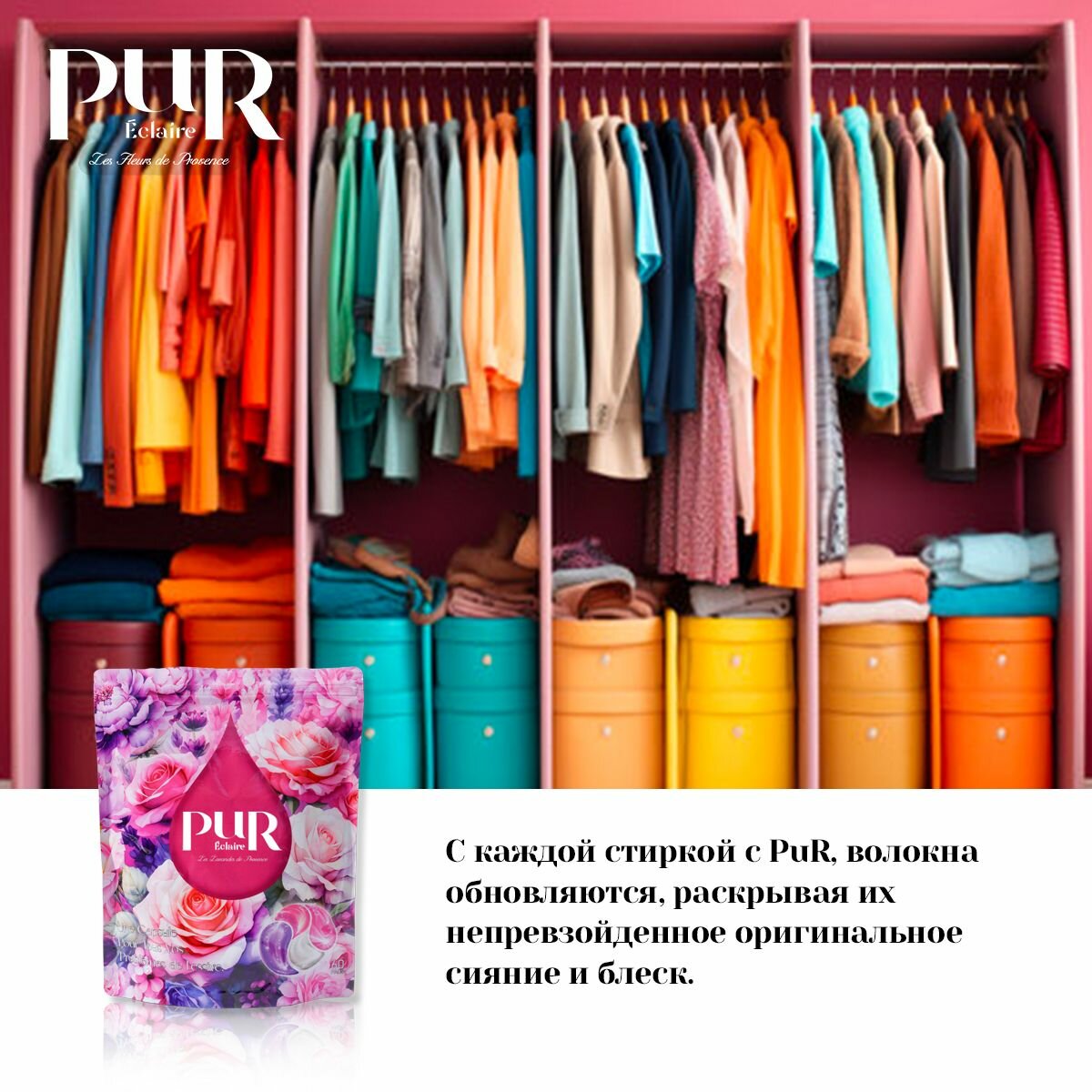 Капсулы для стирки Pur Éclaire "Монако", с ароматом розы, 450г, 25шт