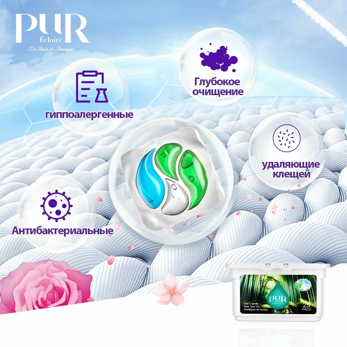 Капсулы для стирки Pur Éclaire "Париж", 6в1, аромат сандала, 450г, 25шт