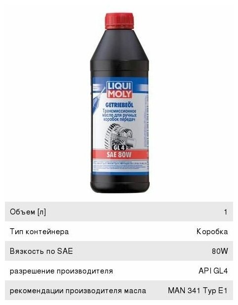 Купить LIQUI MOLY 1952 LiquiMoly 80W Getriebeoil (1L)_масло трансмис.!мин.\API GL 4:MAN 341TypZ1/E1,MB235.1,ZF,MIL-L 2105 1шт