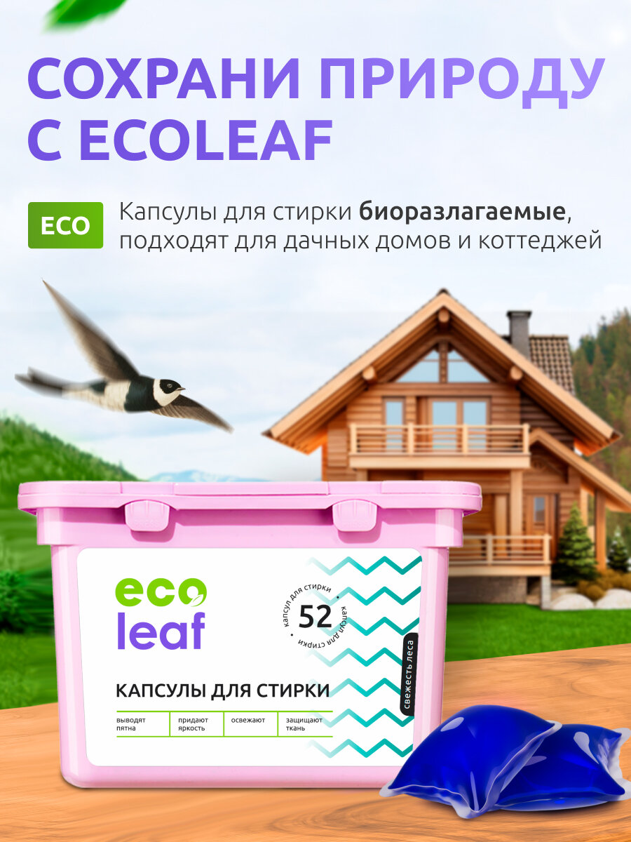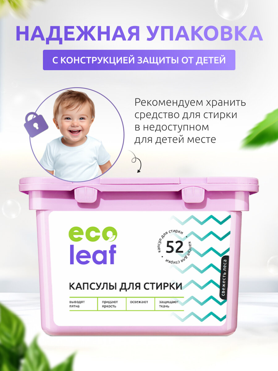 Капсулы для стирки EcoLeaf "Свежесть Леса", антибактериальный эффект, 52 шт интересное: