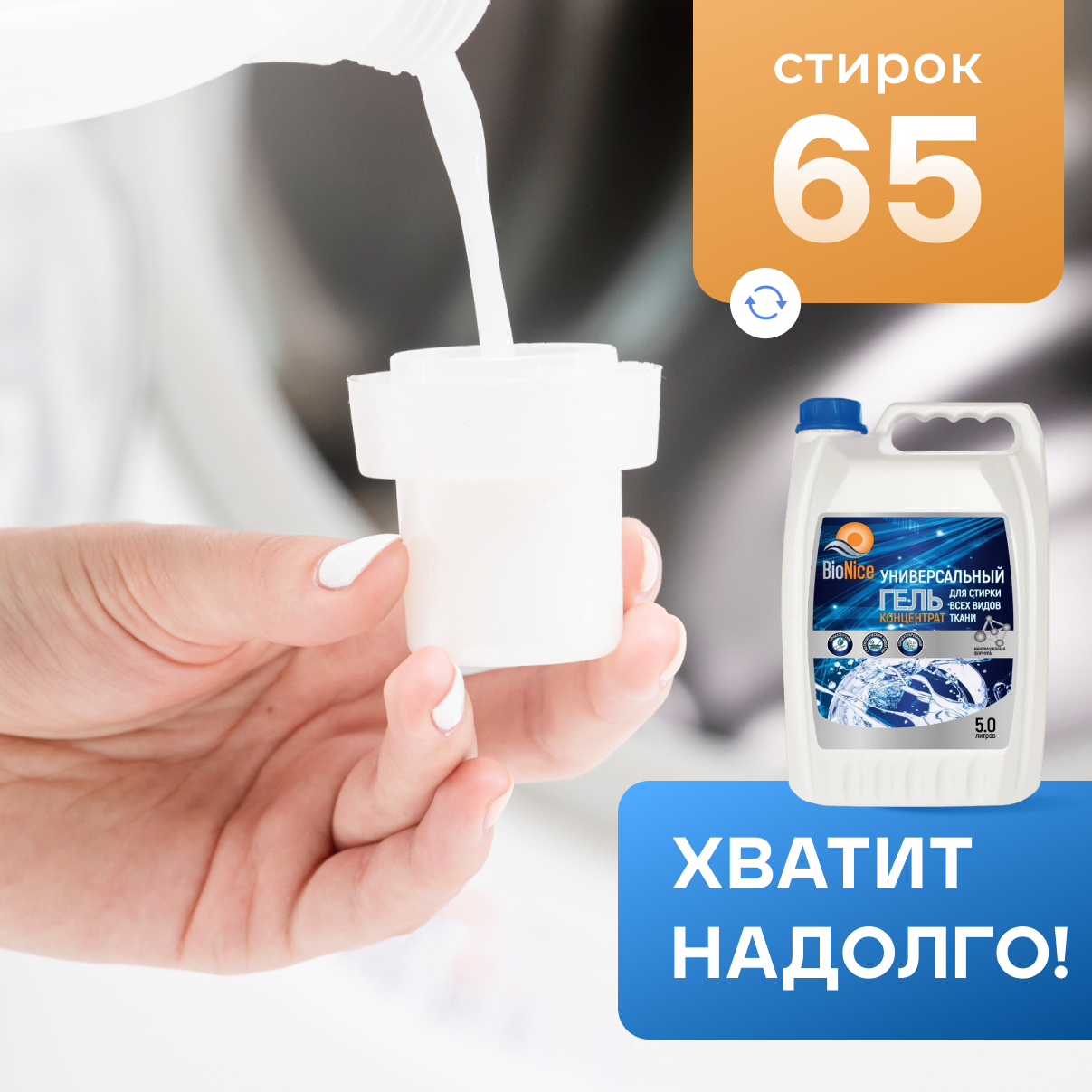 Гель для стирки BioNice 5 литров универсальный гипоаллергенный жидкий для детей и взрослых