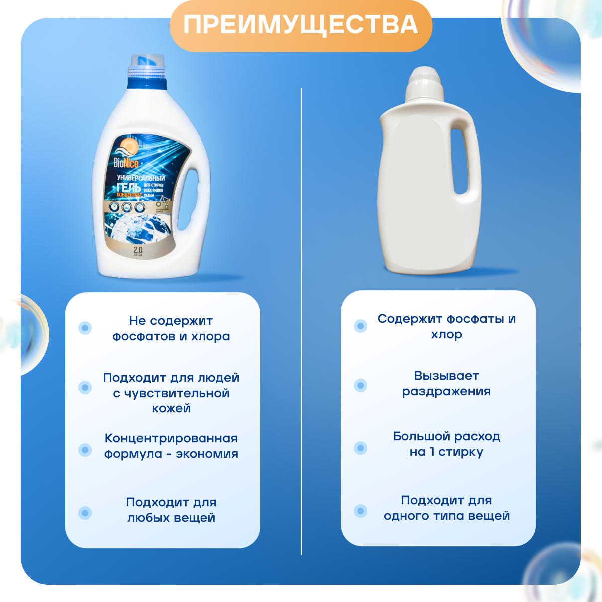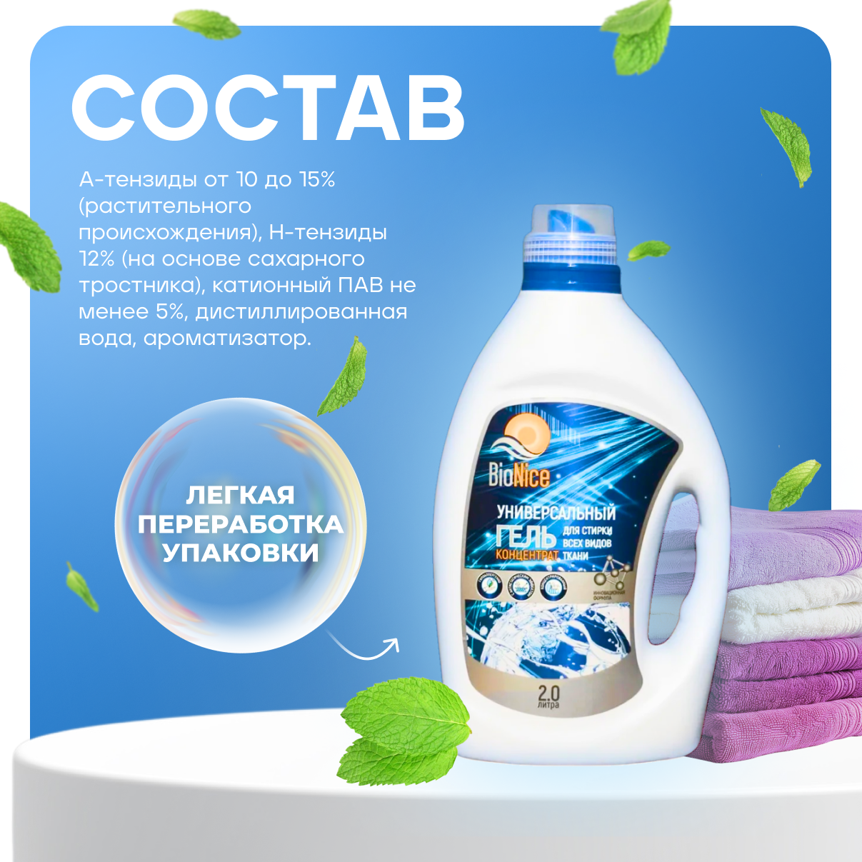 Гель для стирки BioNice универсальный, 2 л, для всех типов тканей, гипоаллергенный интересное: