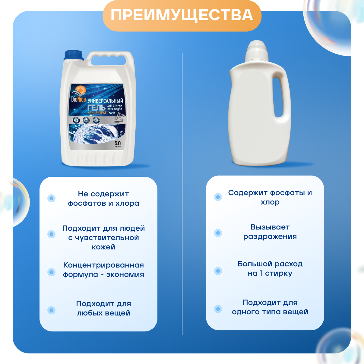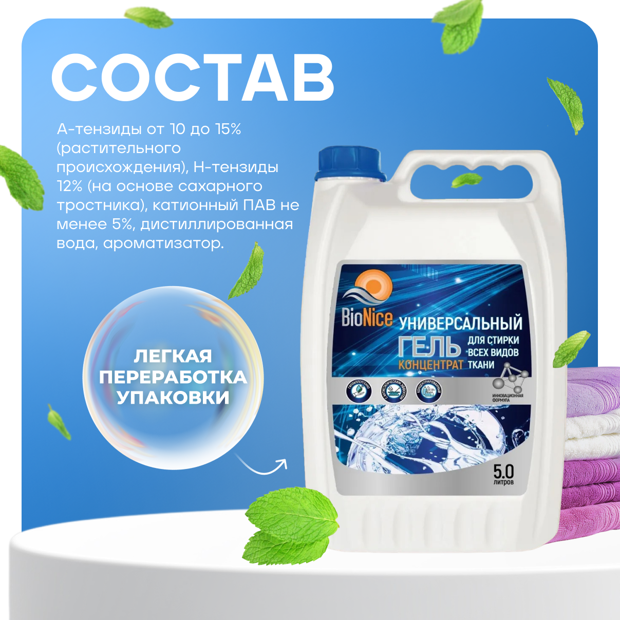 Гель для стирки BioNice 5 литров универсальный гипоаллергенный жидкий для детей и взрослых интересное:
