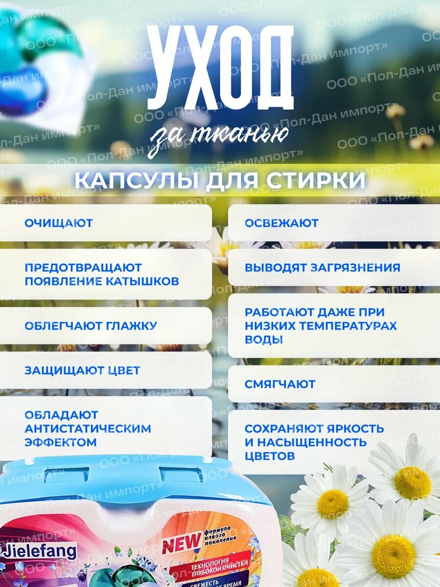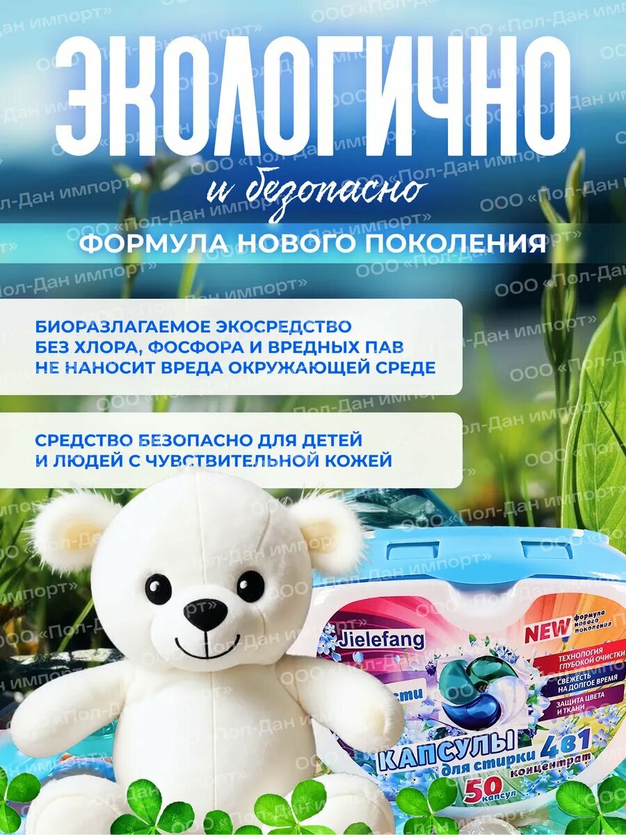 JIELEFANG, Капсулы для стирки с кондиционером, Свежесть, 4в 1, 50 шт. интересное: