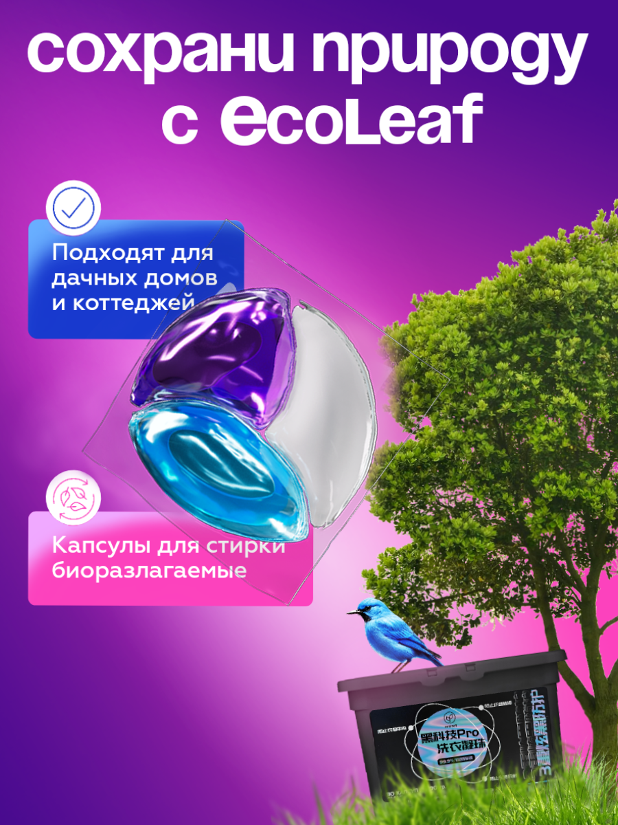 СохранитьКапсулы для стирки EcoLeaf "3в1 Черные", антибактериальный эффект, 35 шт интересное: