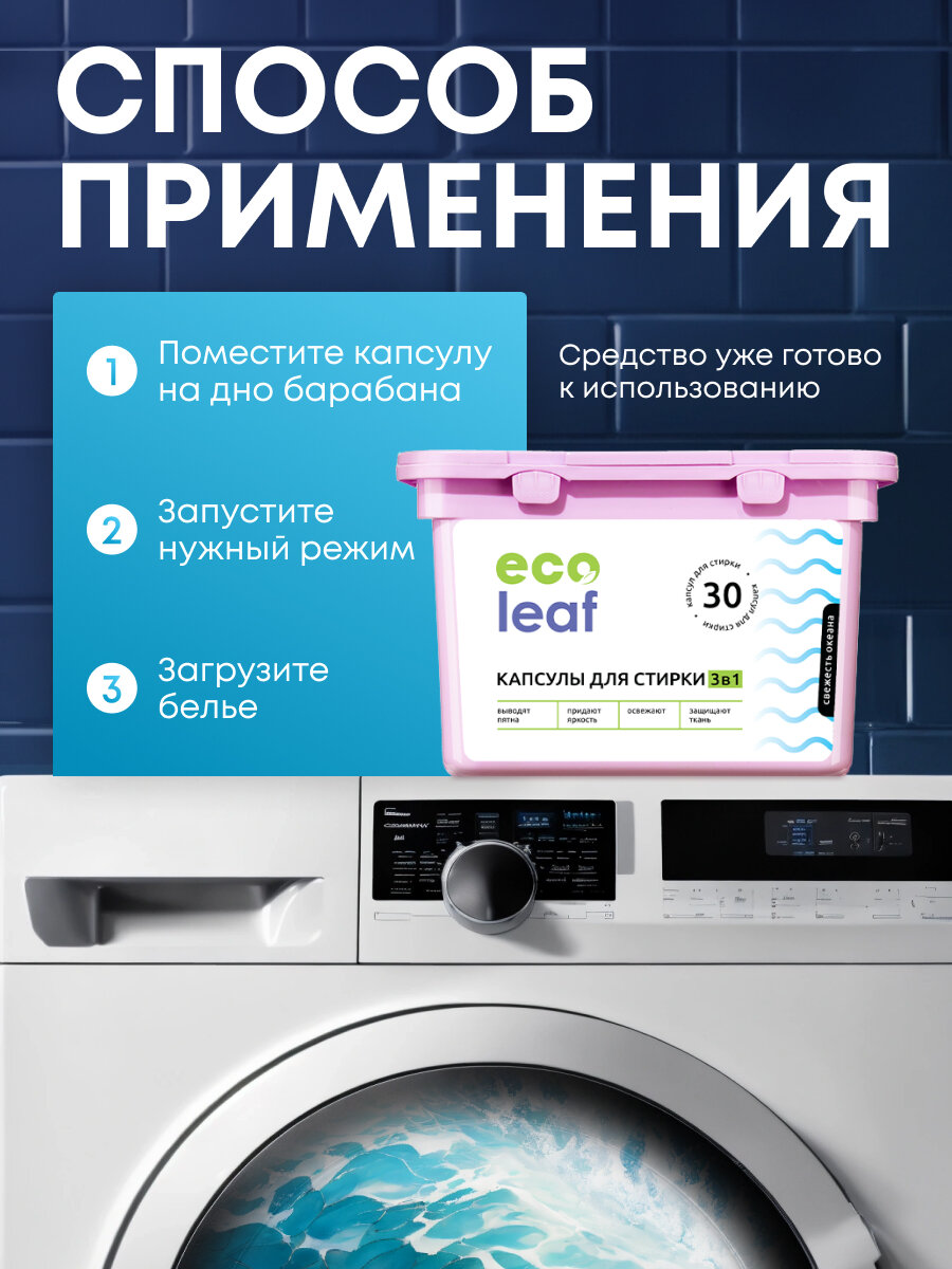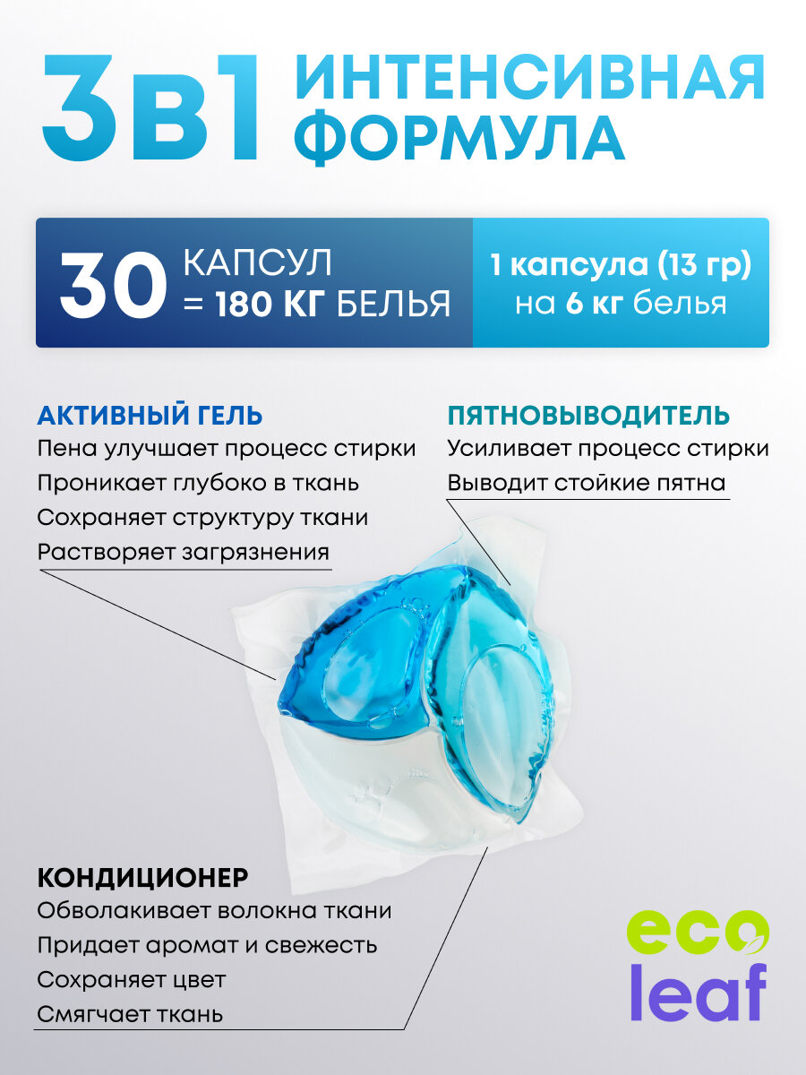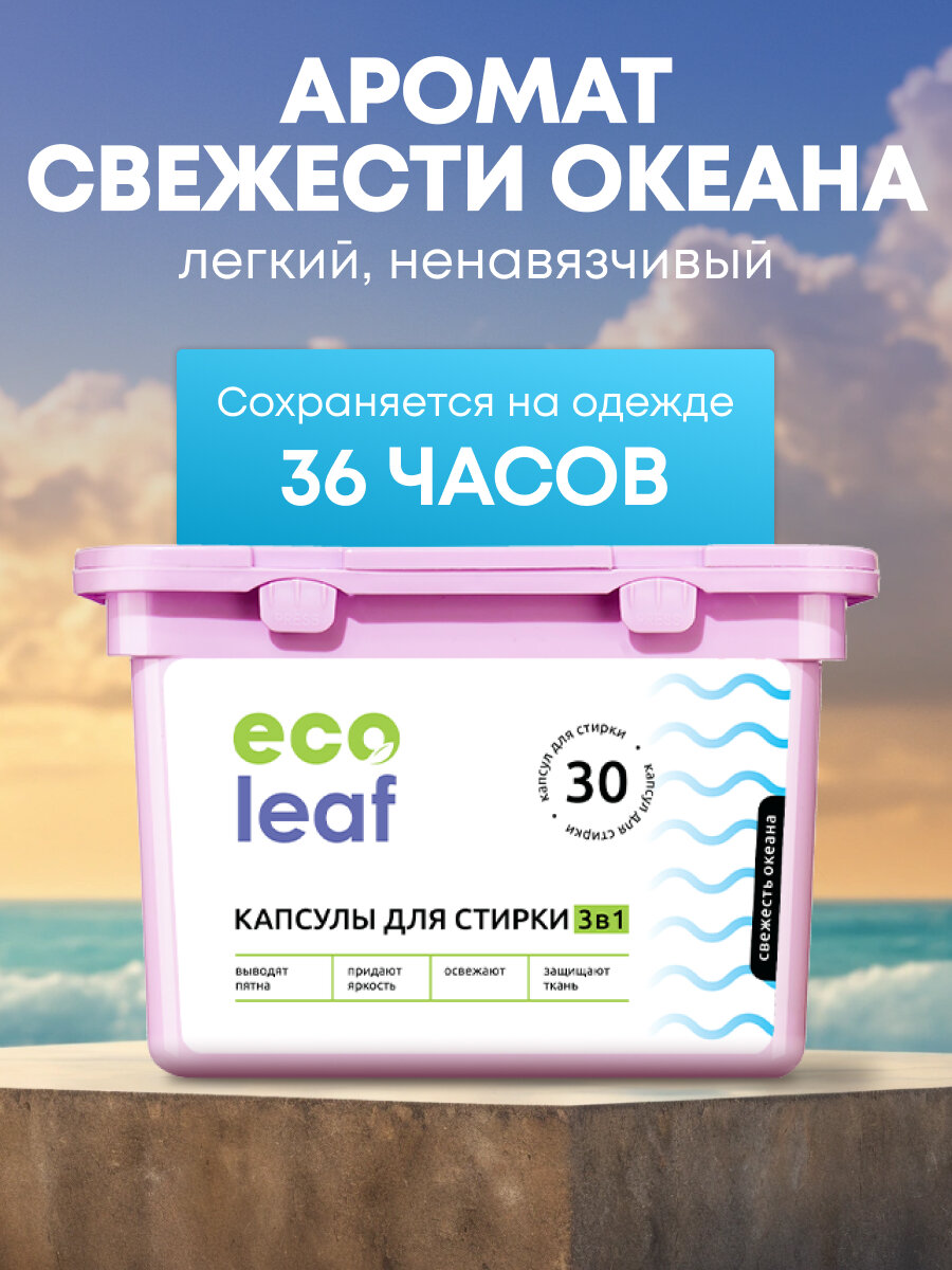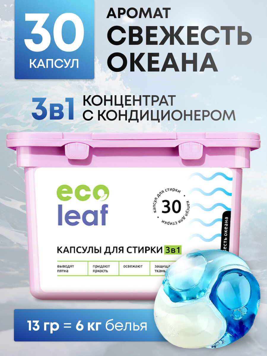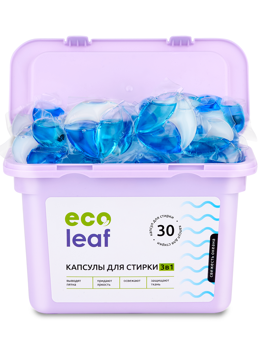 Купить Капсулы для стирки EcoLeaf "Свежесть Океана3в1", антибактериальный эффект, 30 шт