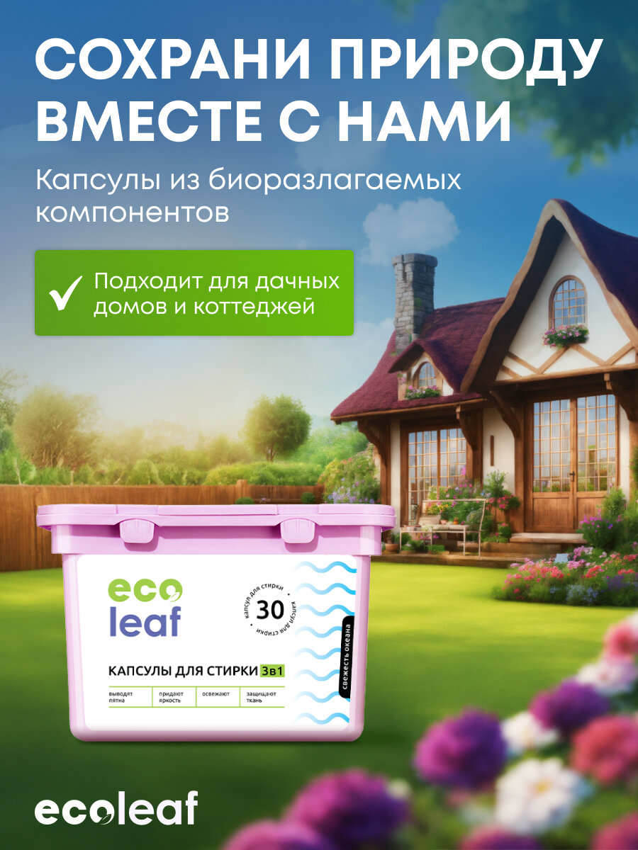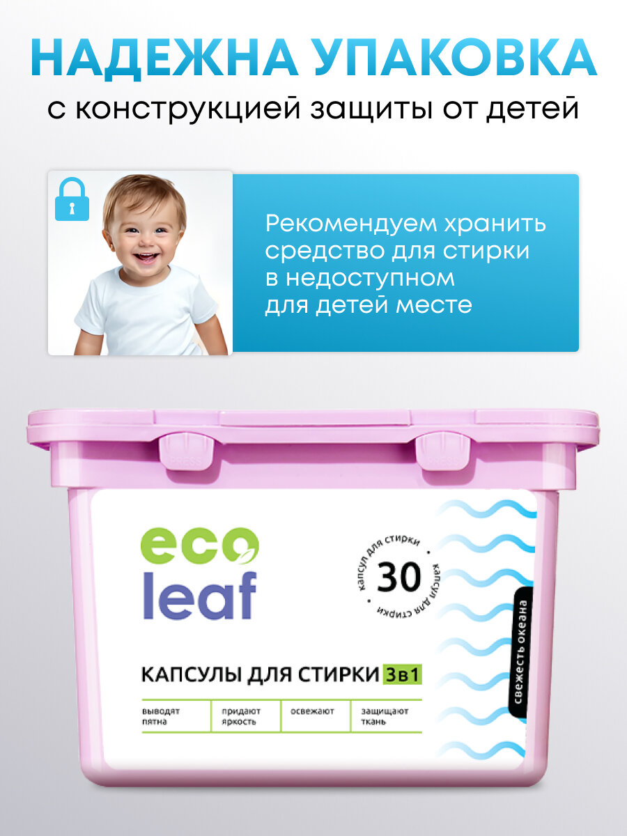 СохранитьКапсулы для стирки EcoLeaf "Свежесть Океана3в1", антибактериальный эффект, 30 шт интересное: