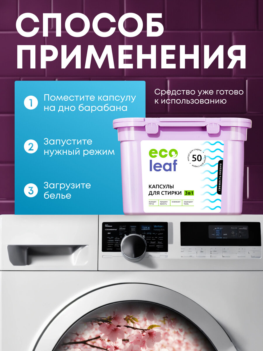 Капсулы для стирки EcoLeaf "Сакура3в1", антибактериальный эффект, 30 шт