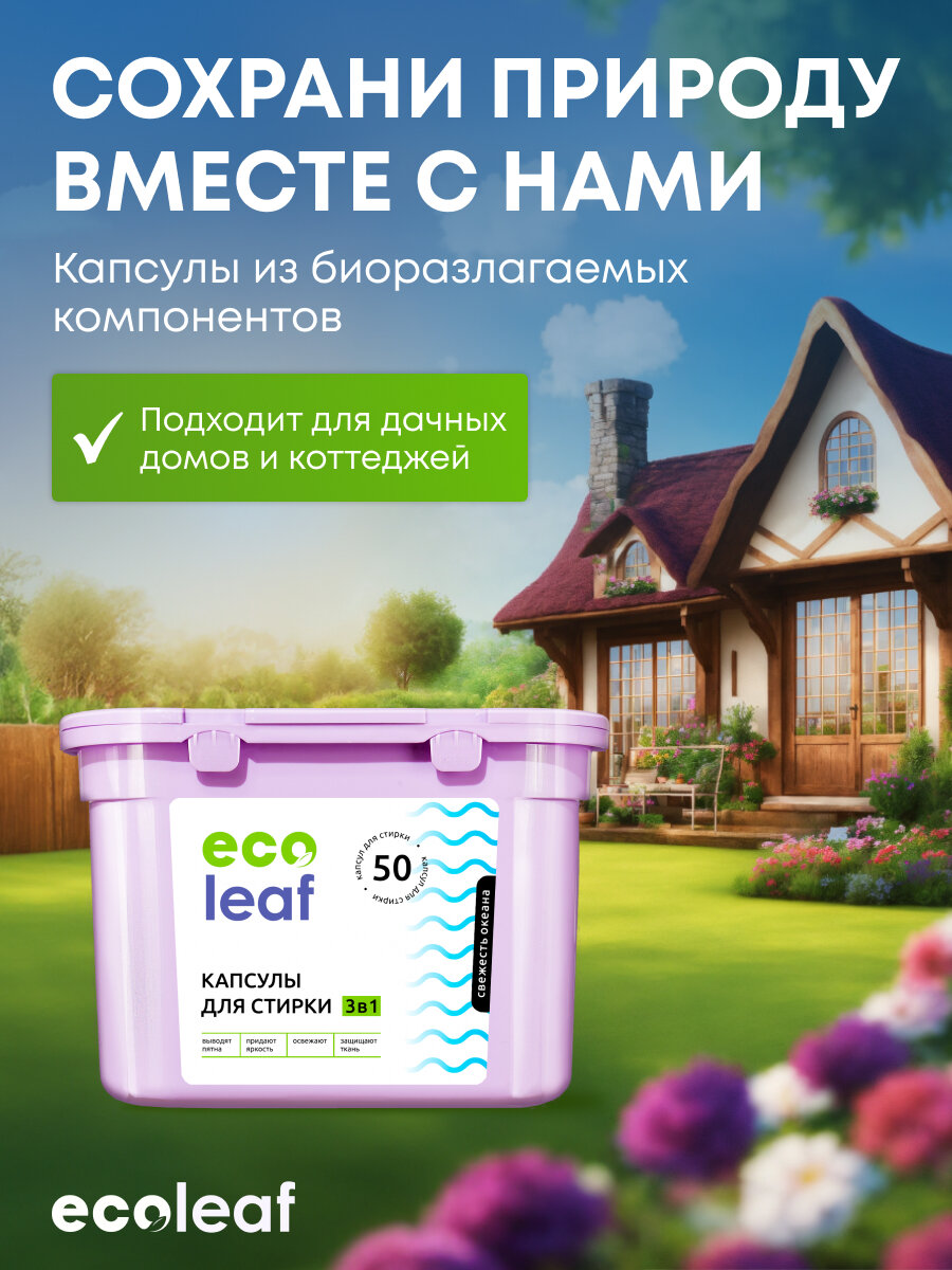 СохранитьКапсулы для стирки EcoLeaf "Свежесть Океана3в1", антибактериальный эффект, 50 шт интересное: