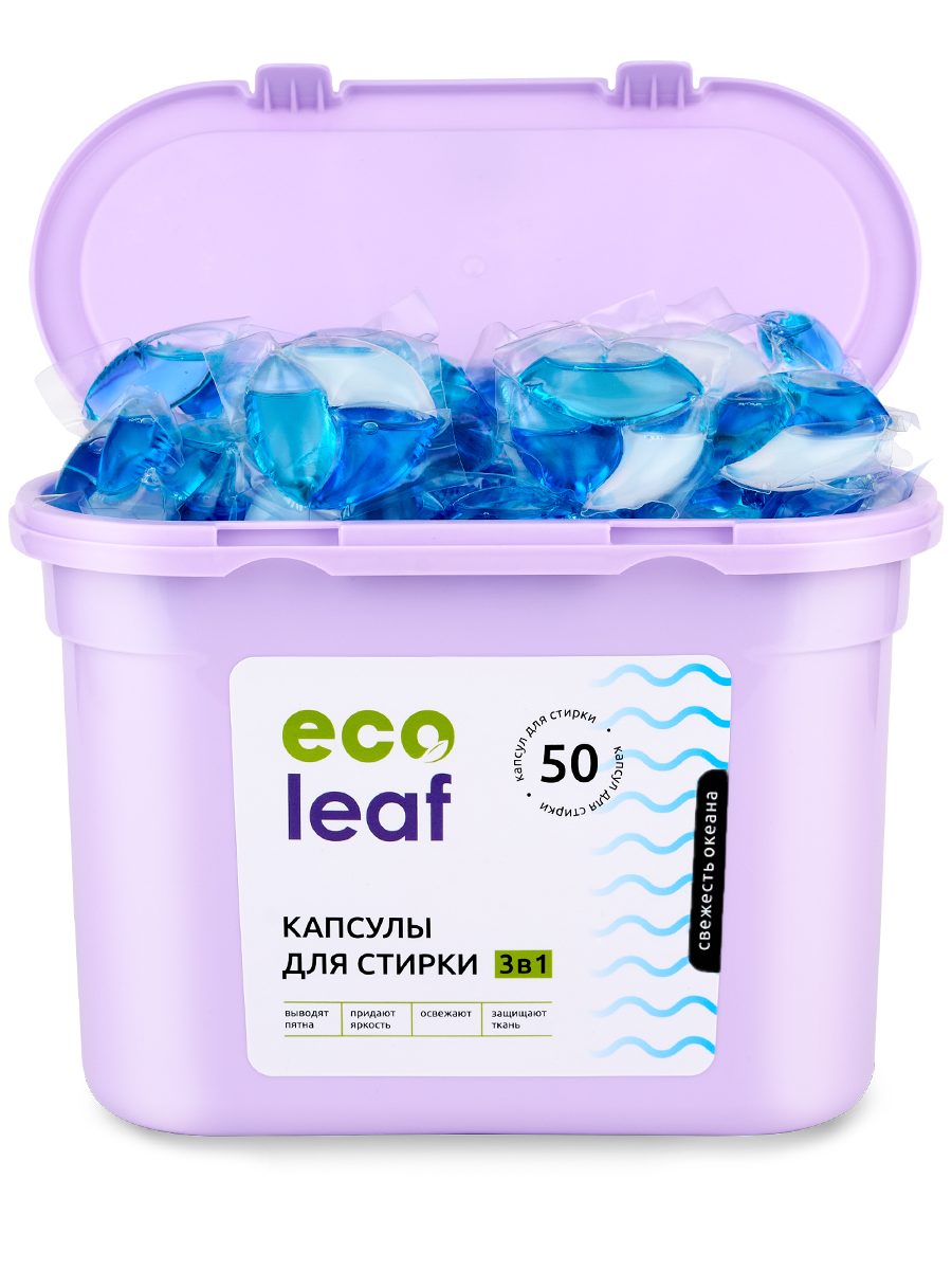 Купить Капсулы для стирки EcoLeaf "Свежесть Океана3в1", антибактериальный эффект, 50 шт