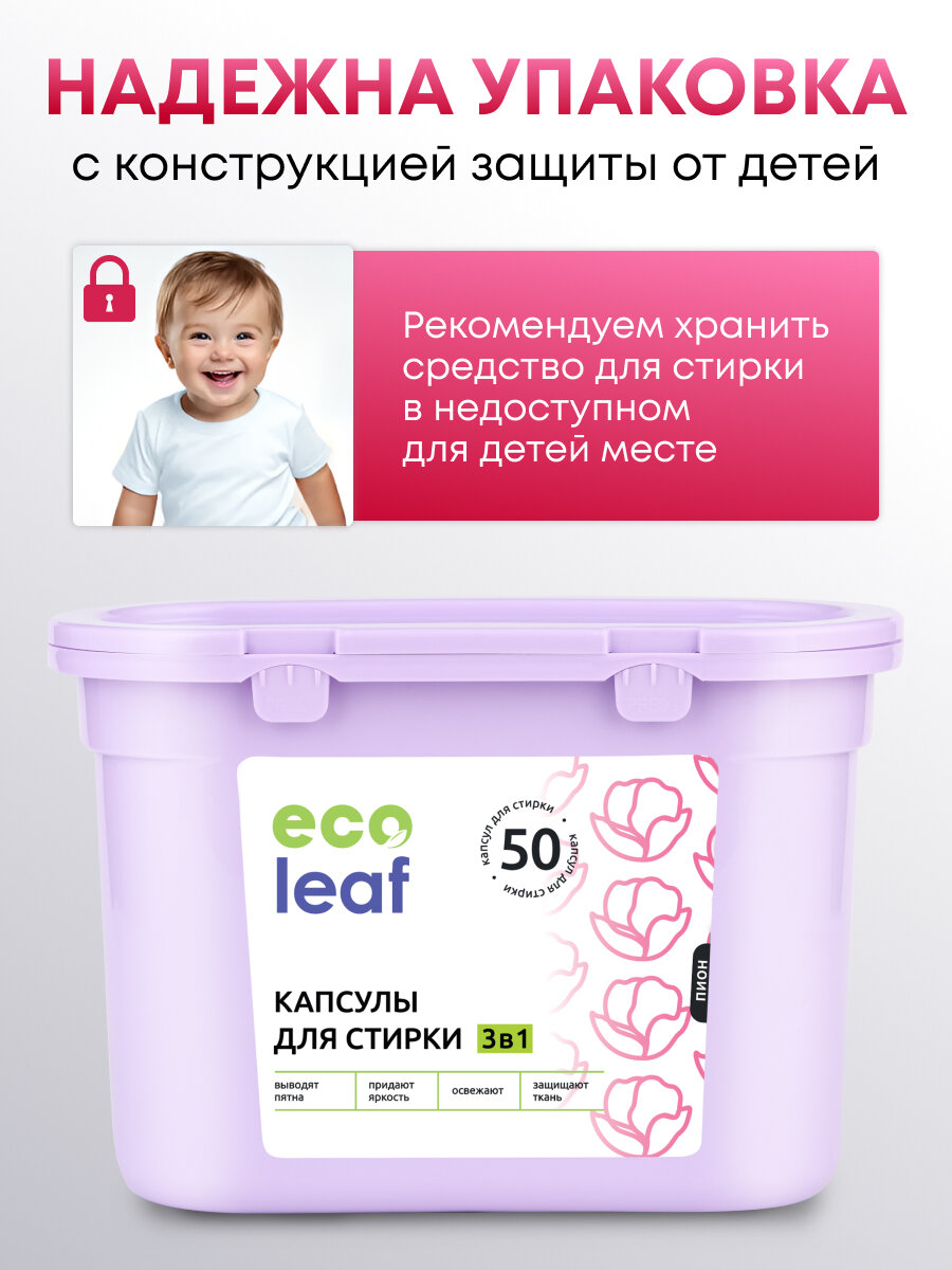 Купить Капсулы для стирки EcoLeaf "Пион 3в1", антибактериальный эффект, 50 шт
