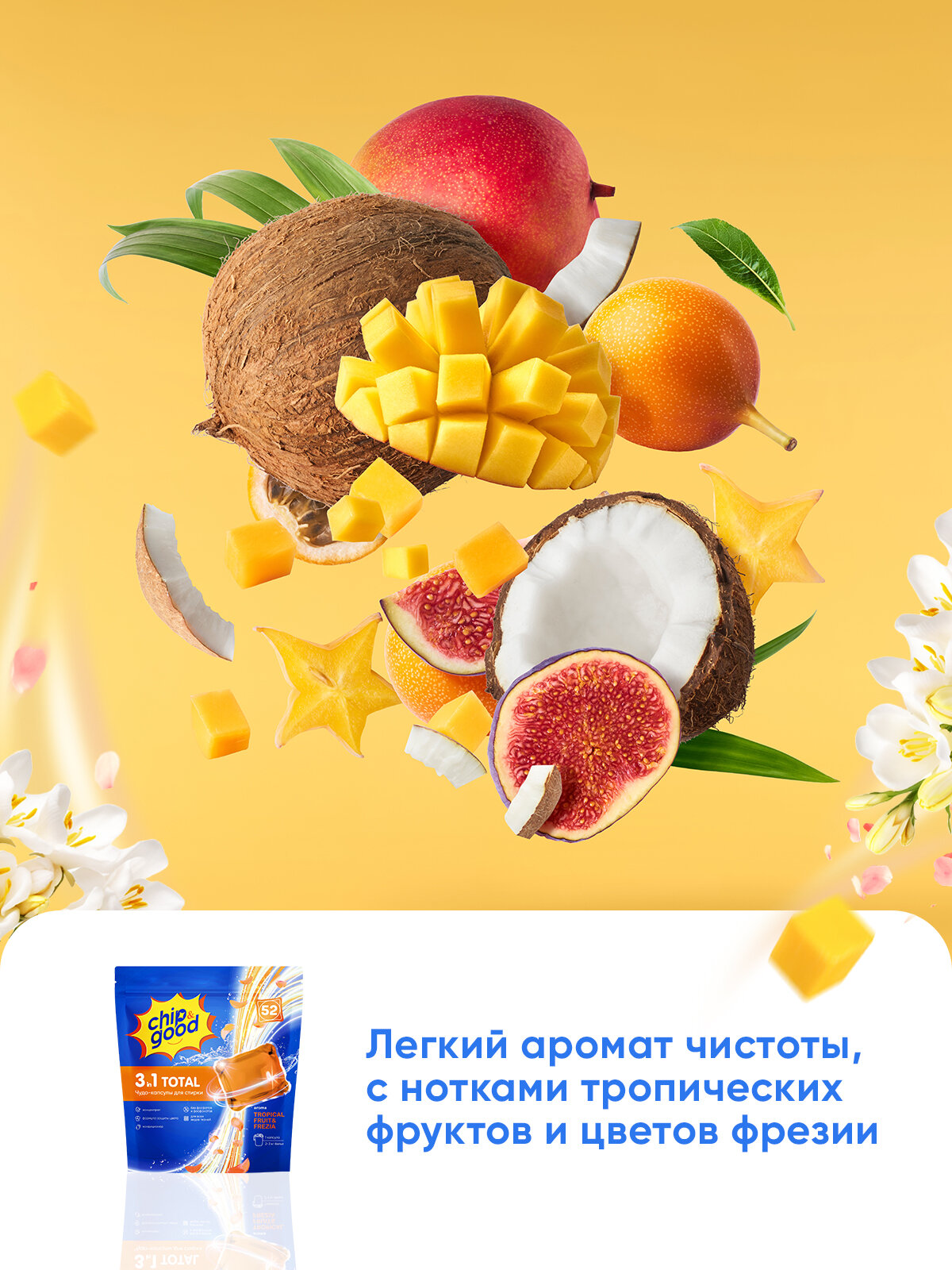 Капсулы для стирки 3в1 box Chip&Good с энзимами и кондиционером 52 шт, с ароматом тропических фруктов и фрезии