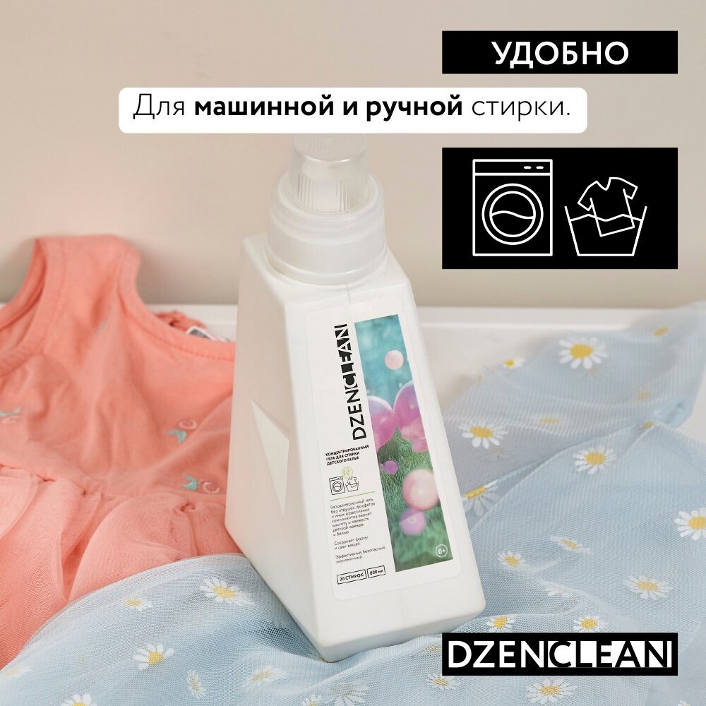 Гипоаллергенный концентрированный гель для стирки детского белья DzenClean, 800 мл интересное: