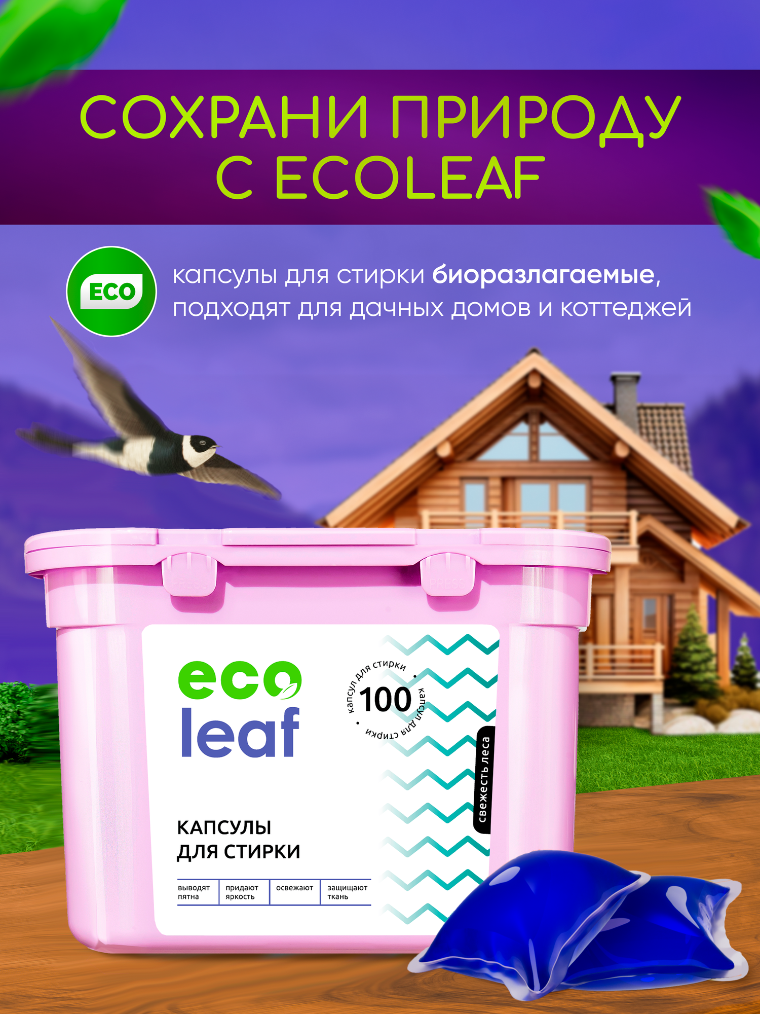 Капсулы для стирки EcoLeaf "Свежесть леса", антибактериальный эффект, 100 шт интересное:
