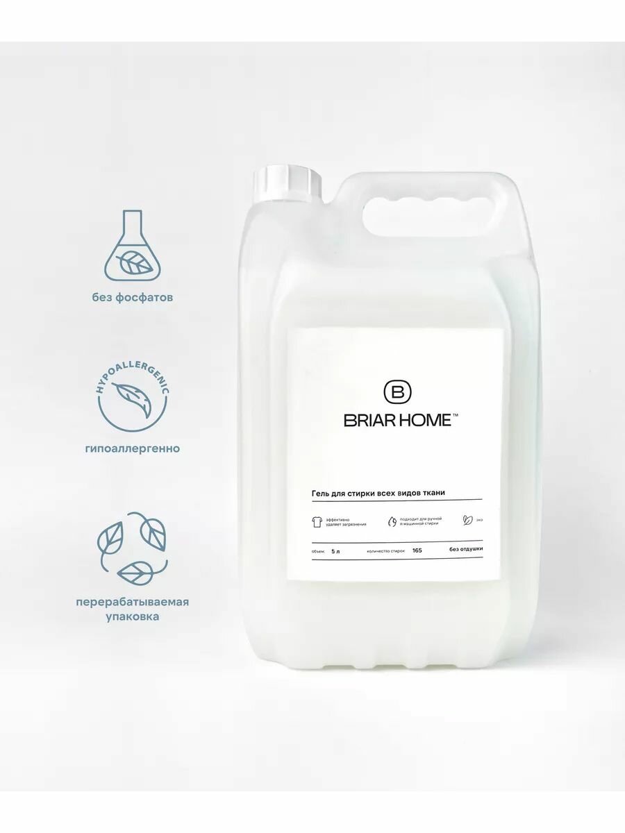 Гель для стирки, гипоаллергенный, для всех типов тканей, без аромата, 5л, BRIARHOME интересное: