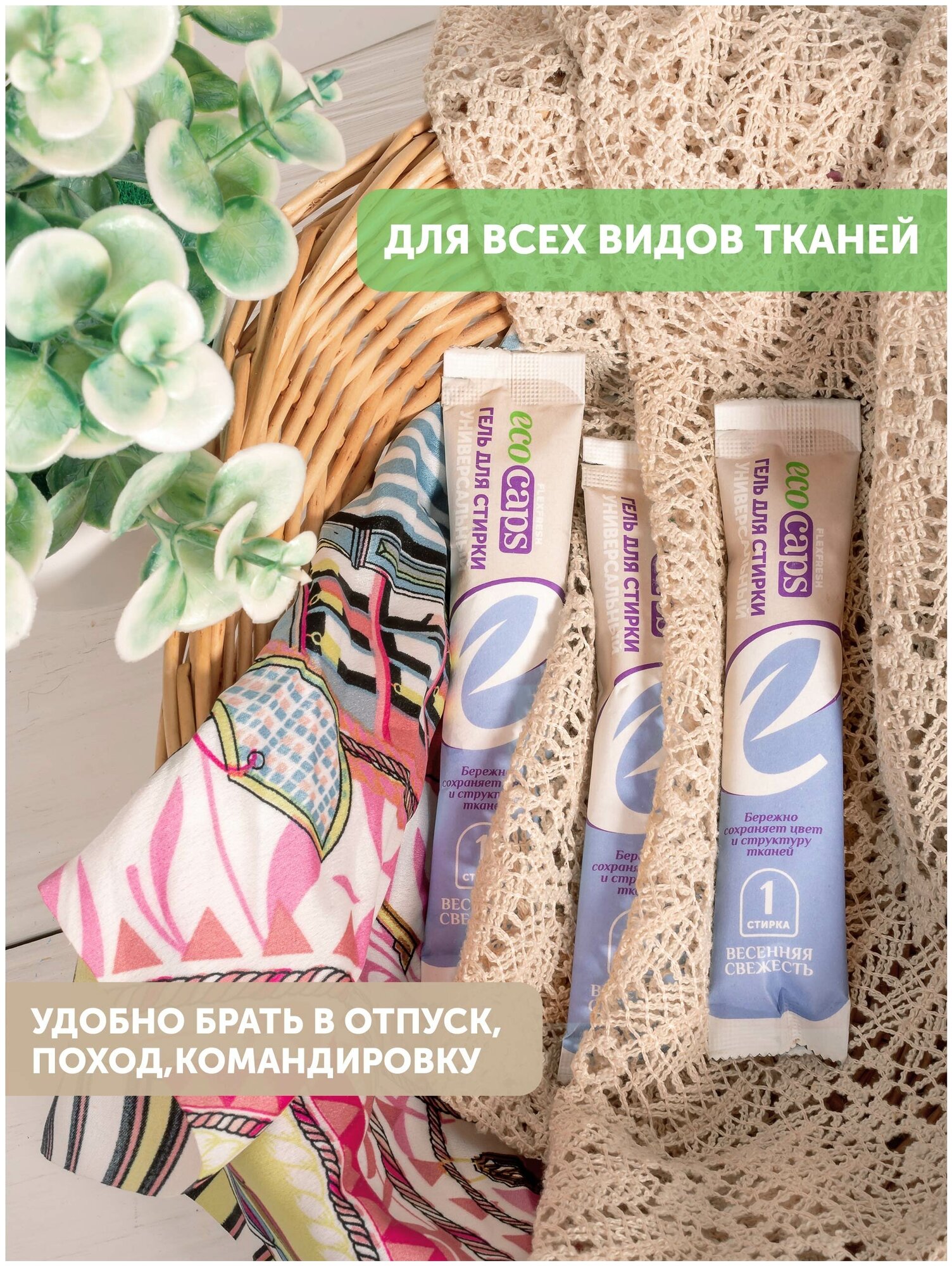 Универсальный гель для стирки в стиках EcoCaps, аромат весенняя свежесть, 50 шт х 30 мл интересное: