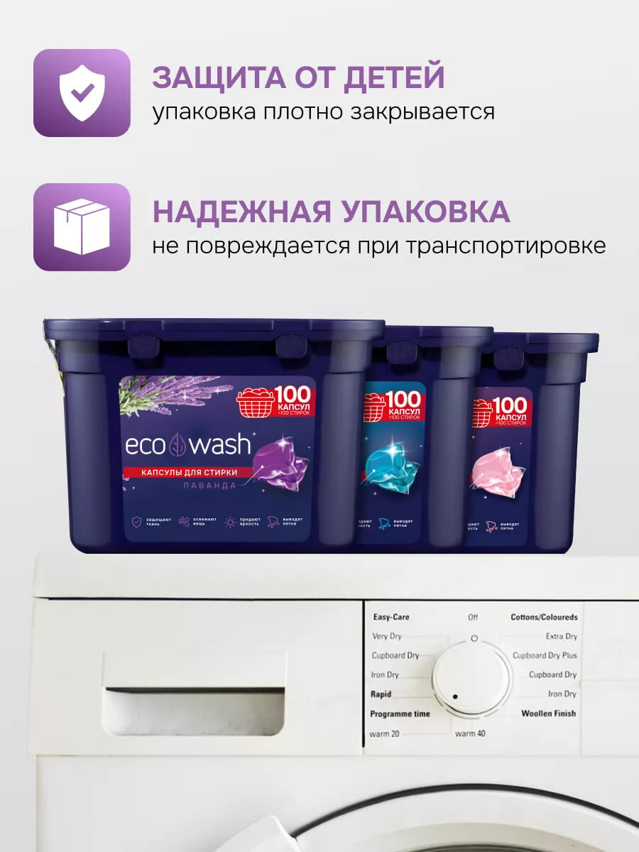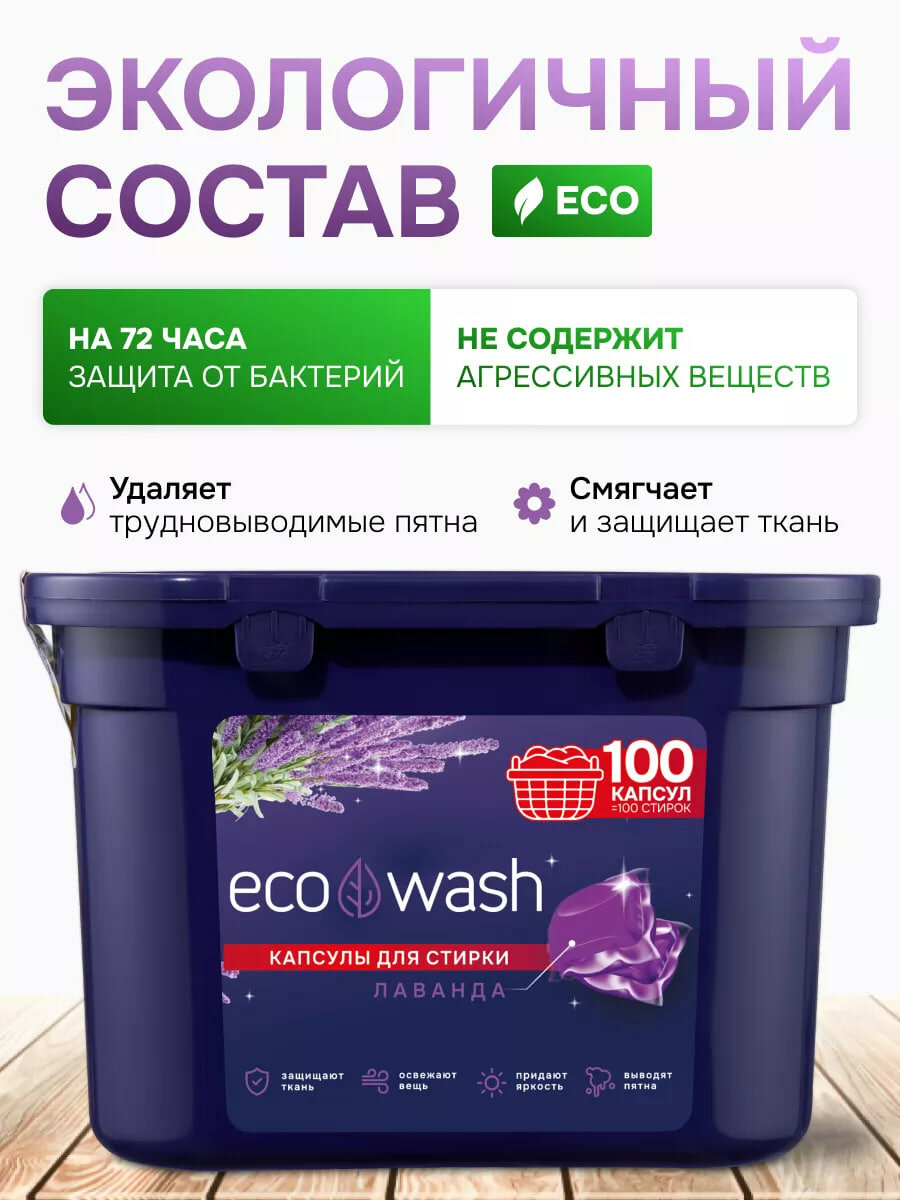 Капсулы для стирки EcoWash с антибактериальным эффектом, Лаванда, 100 штук интересное: