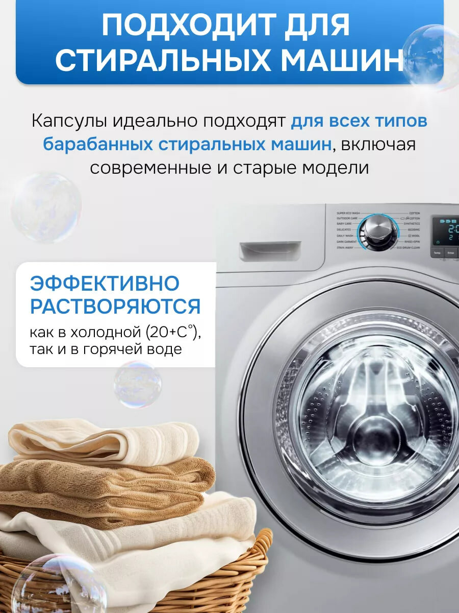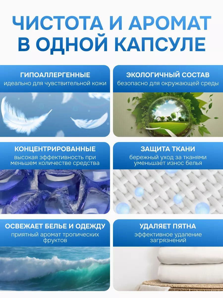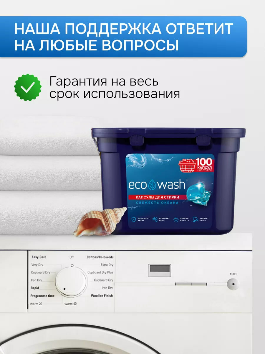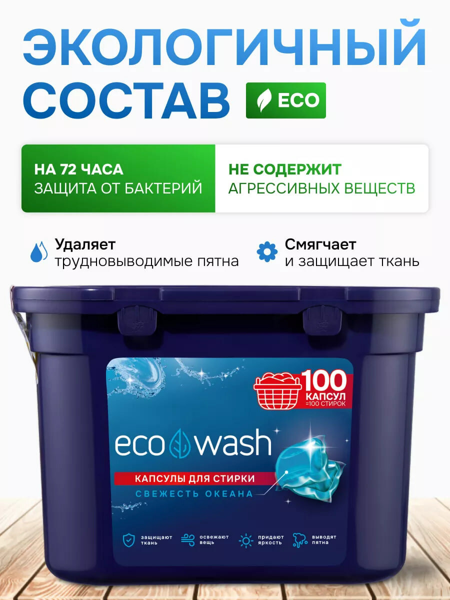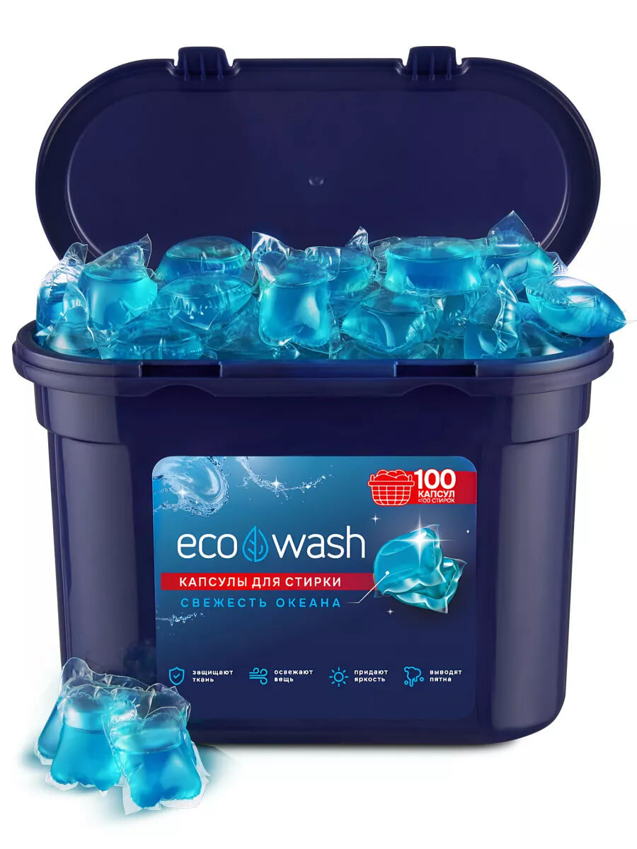 Капсулы для стирки EcoWash с антибактериальным эффектом, свежесть океана, 100 штук интересное: