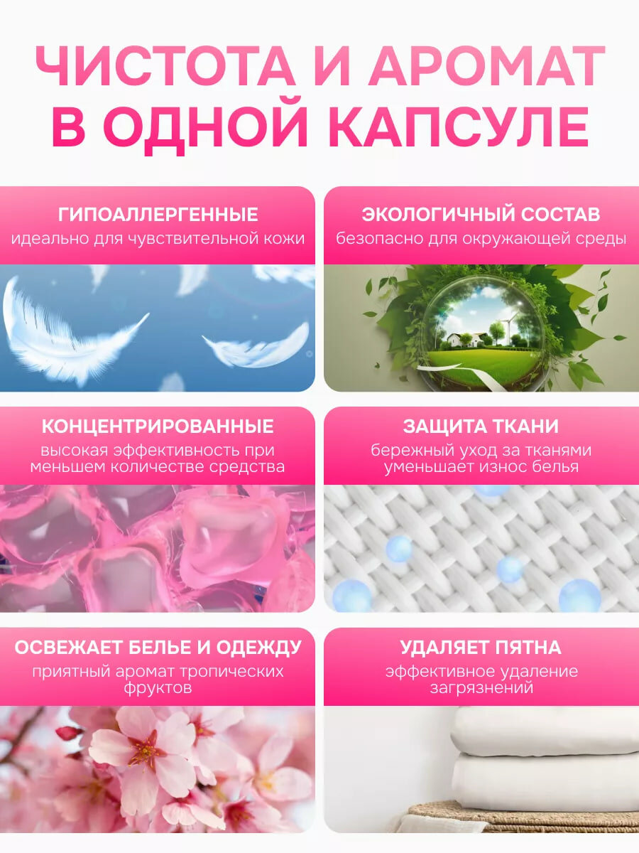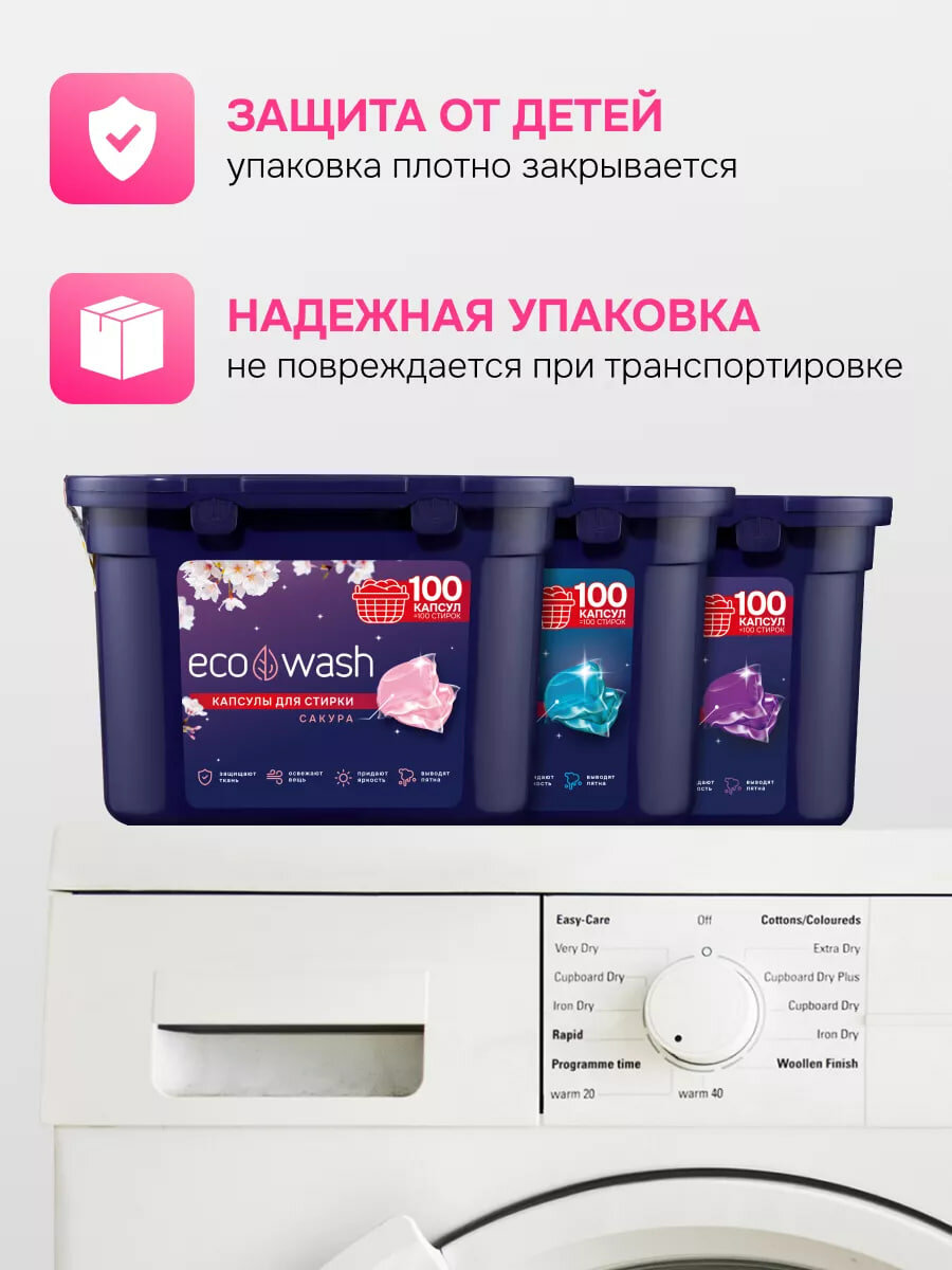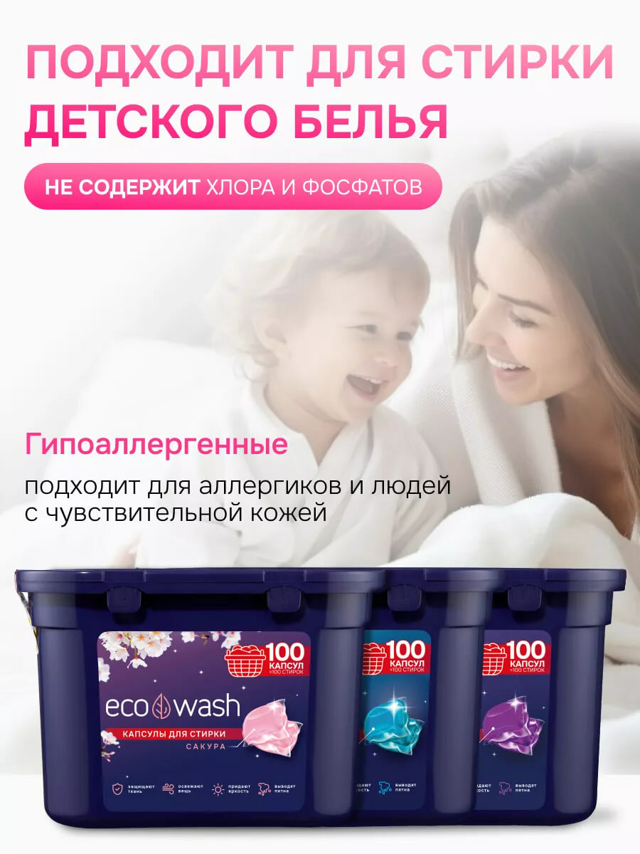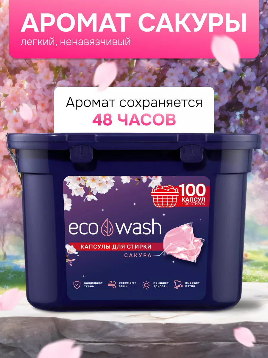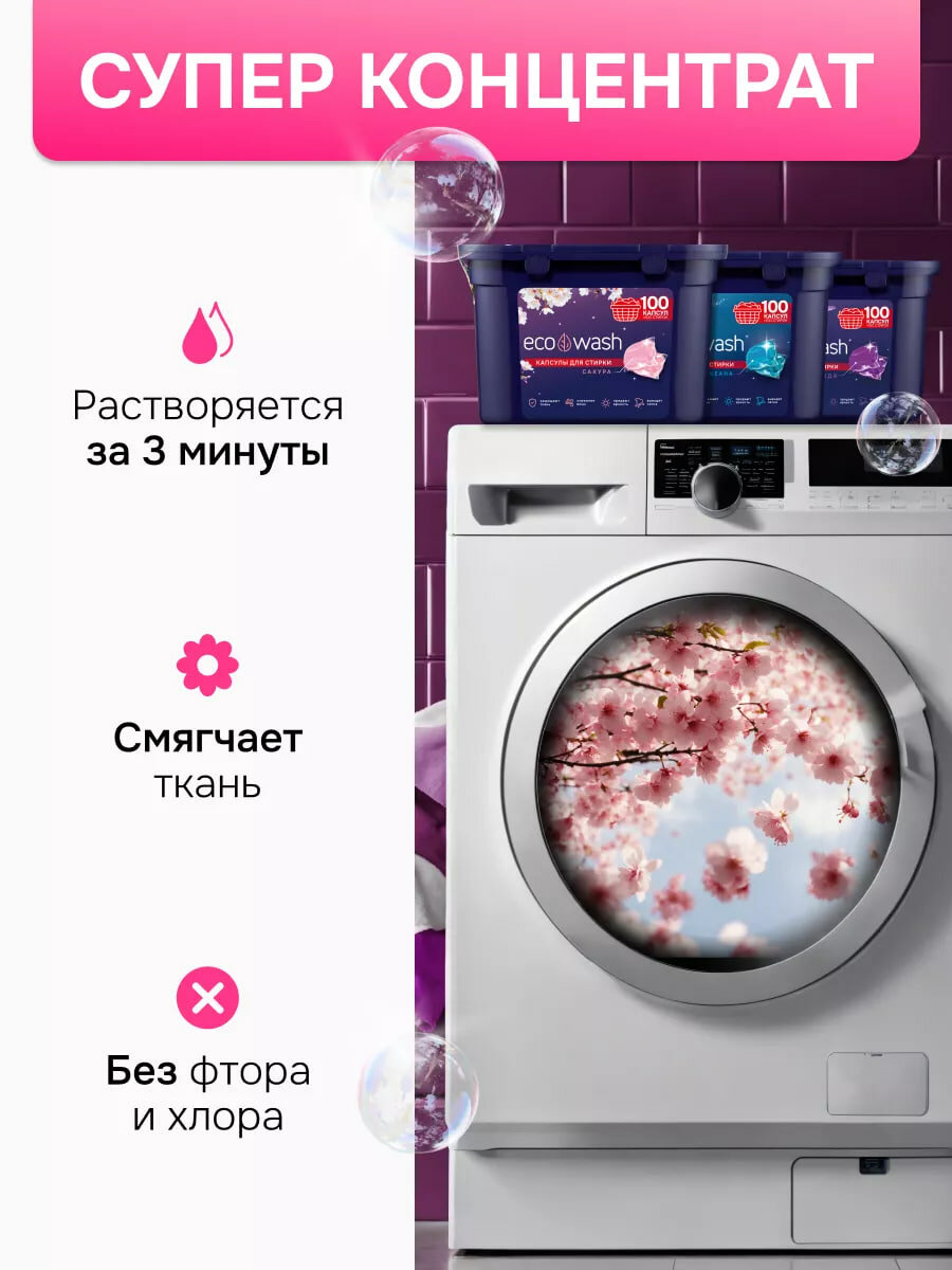 Капсулы для стирки EcoWash с антибактериальным эффектом, Сакура, 100 штук интересное: