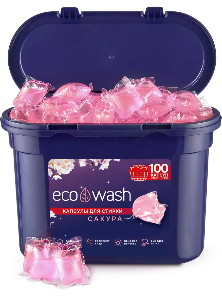 Купить Капсулы для стирки EcoWash с антибактериальным эффектом, Сакура, 100 штук