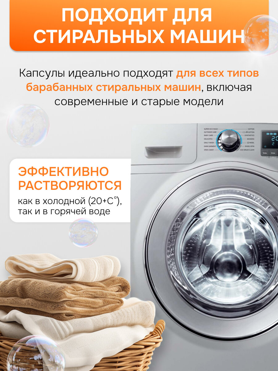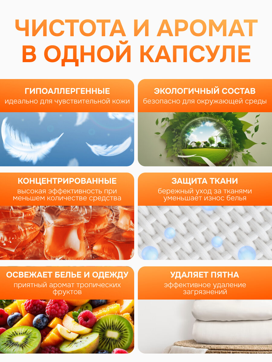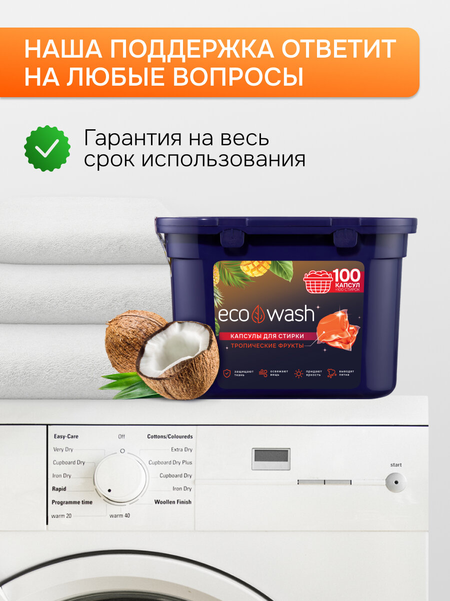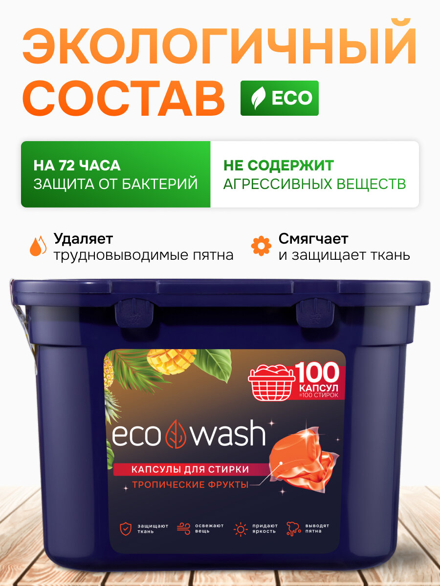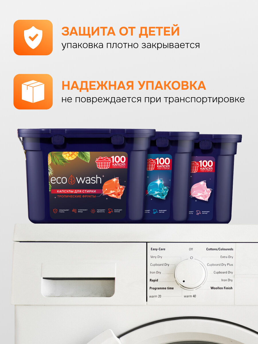 Капсулы для стирки EcoWash с антибактериальным эффектом, Тропики, 100 штук интересное: