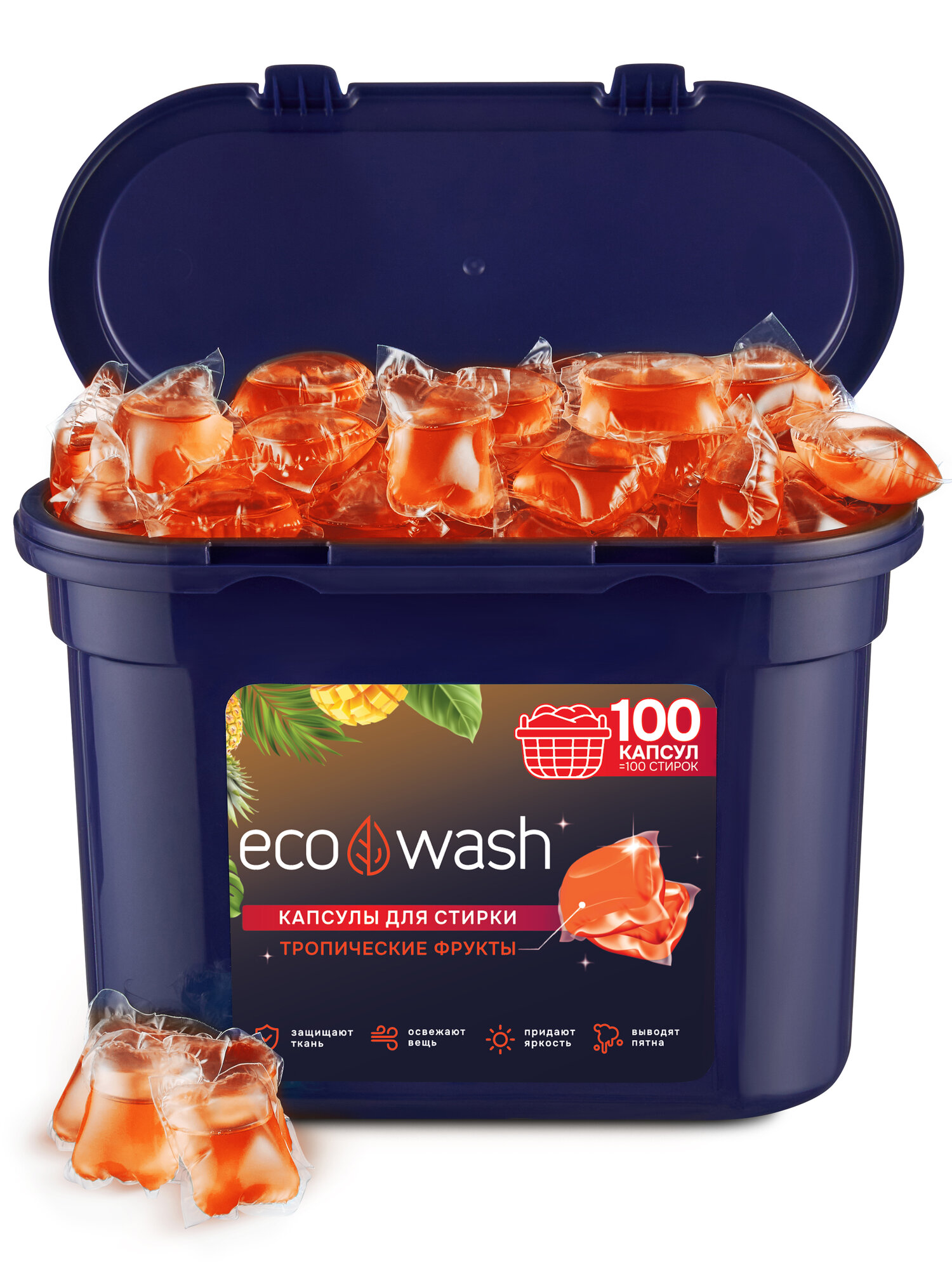 Купить Капсулы для стирки EcoWash с антибактериальным эффектом, Тропики, 100 штук