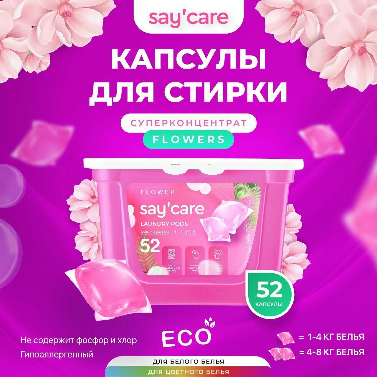 Капсулы для стирки белья Say'Care Flower концентрат, 52 шт. (розовые) интересное: