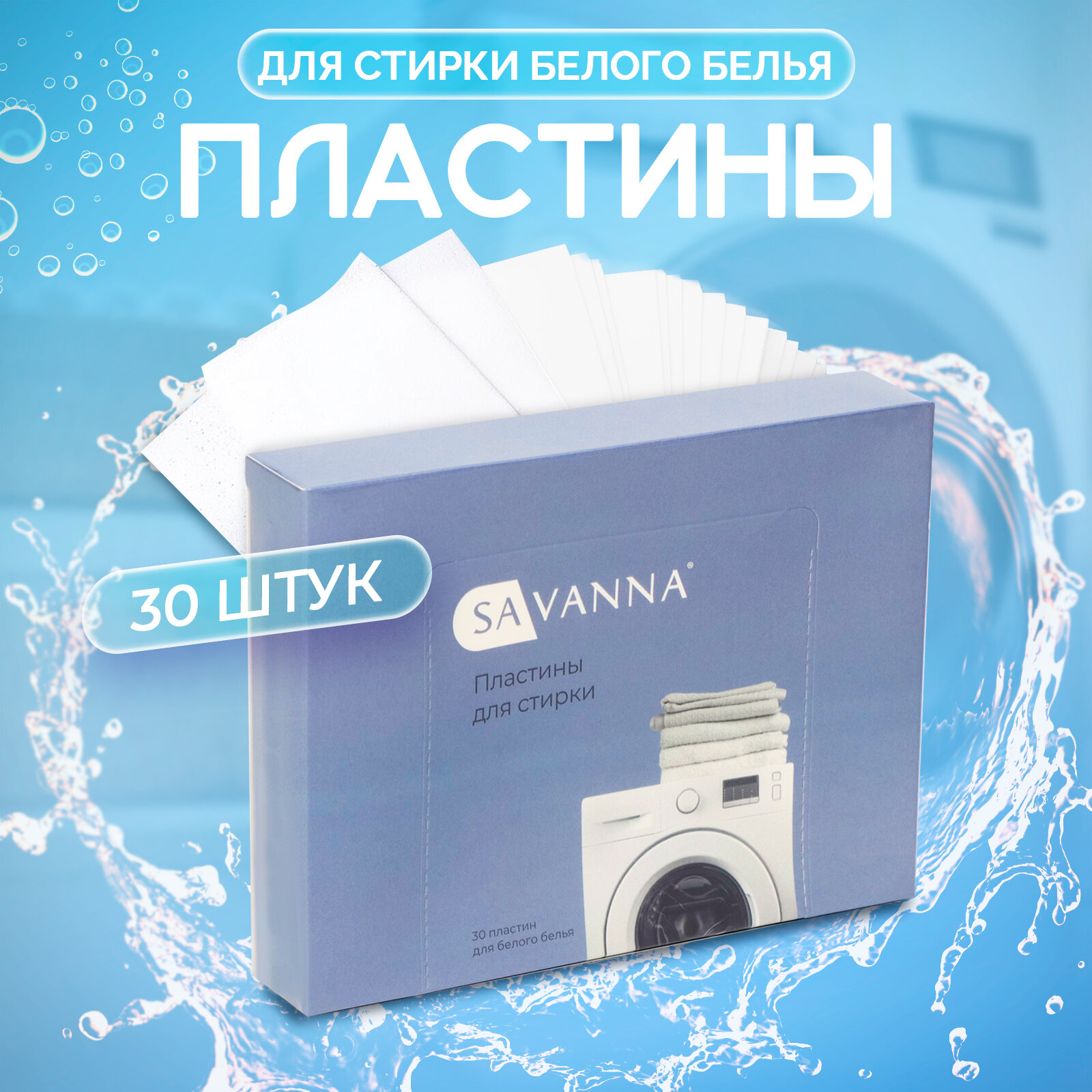 Стиральный порошок в пластинах для белого белья, листы для стирки белья 30 шт SAVANNA интересное: