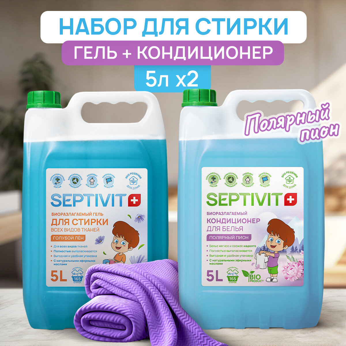 СохранитьНабор Septivit Гель для стирки Голубой лен 5л + Кондиционер Полярный пион 5л Септивит интересное: