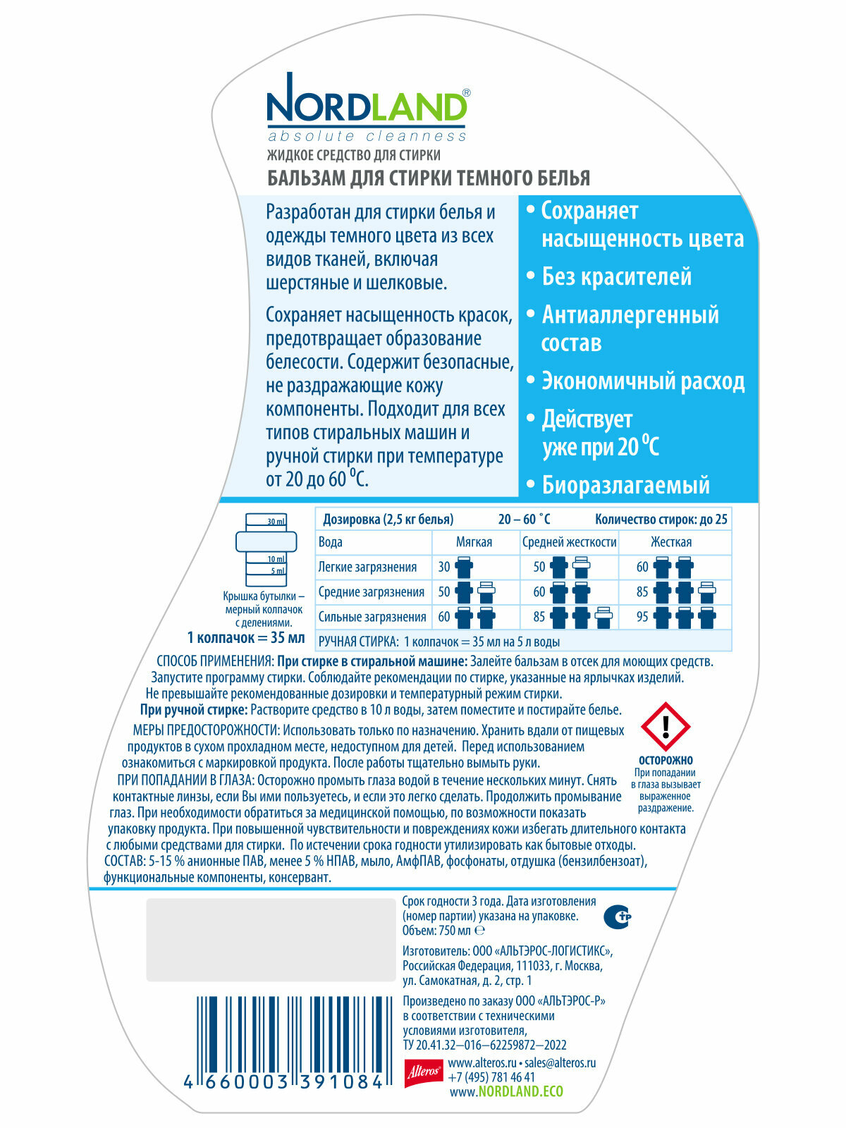 Бальзам для стирки темного белья + для стирки белого белья, NORDLAND 2 шт -750 мл