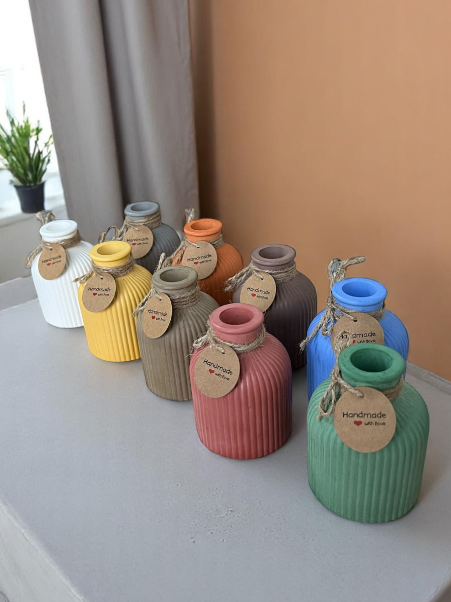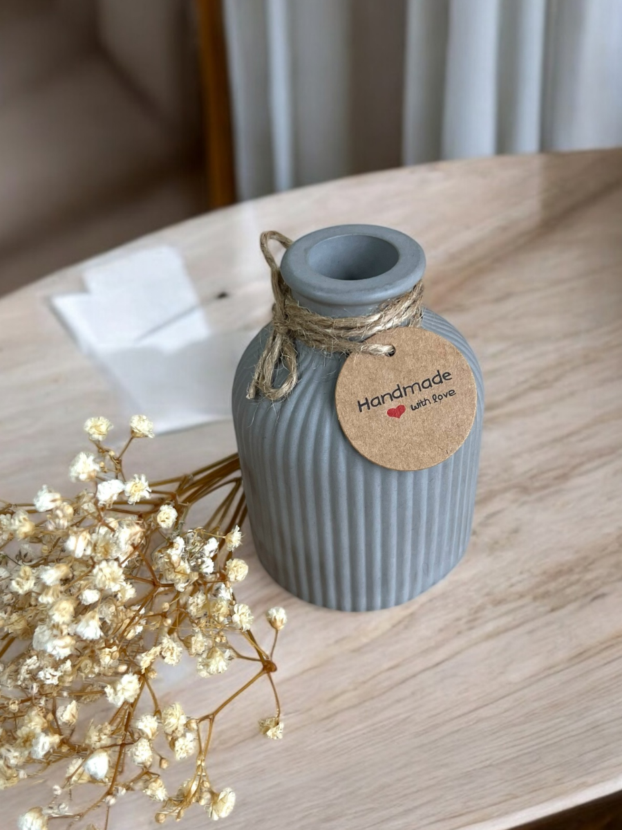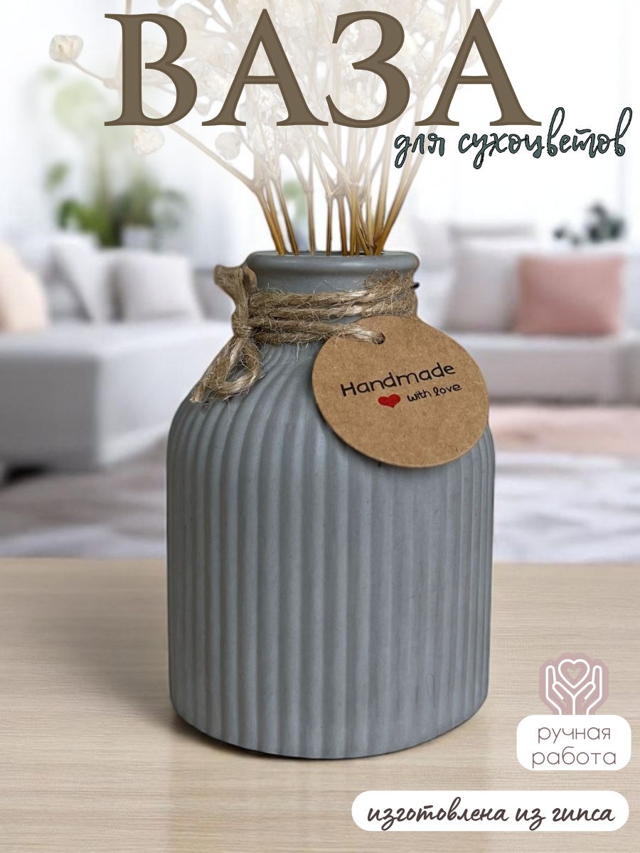 Ваза декоративная интерьерная для сухоцветов и живых цветов, ручная работа, гипс, серая