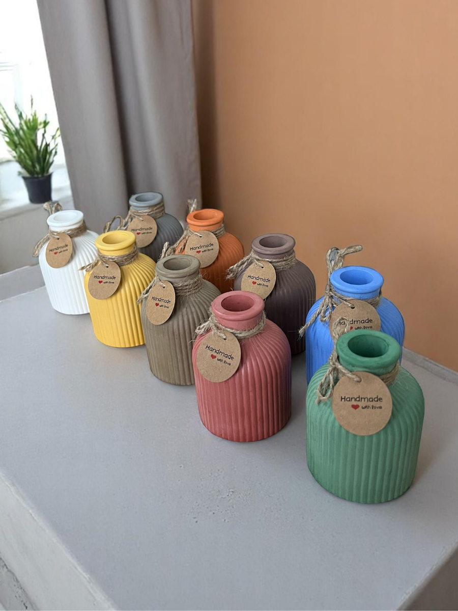 Ваза декоративная интерьерная для сухоцветов и живых цветов, ручная работа, гипс, серая
