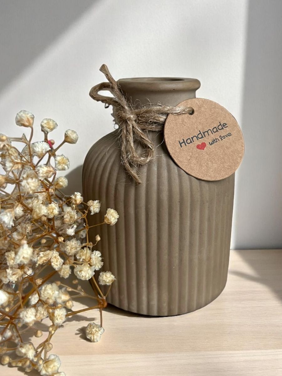 Ваза декоративная интерьерная для сухоцветов и живых цветов, ручная работа, гипс, серая