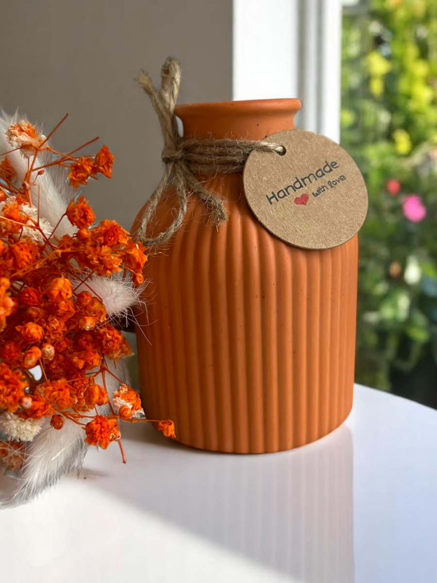 Купить Ваза декоративная интерьерная для сухоцветов, ручная работа, гипс, оранжевая