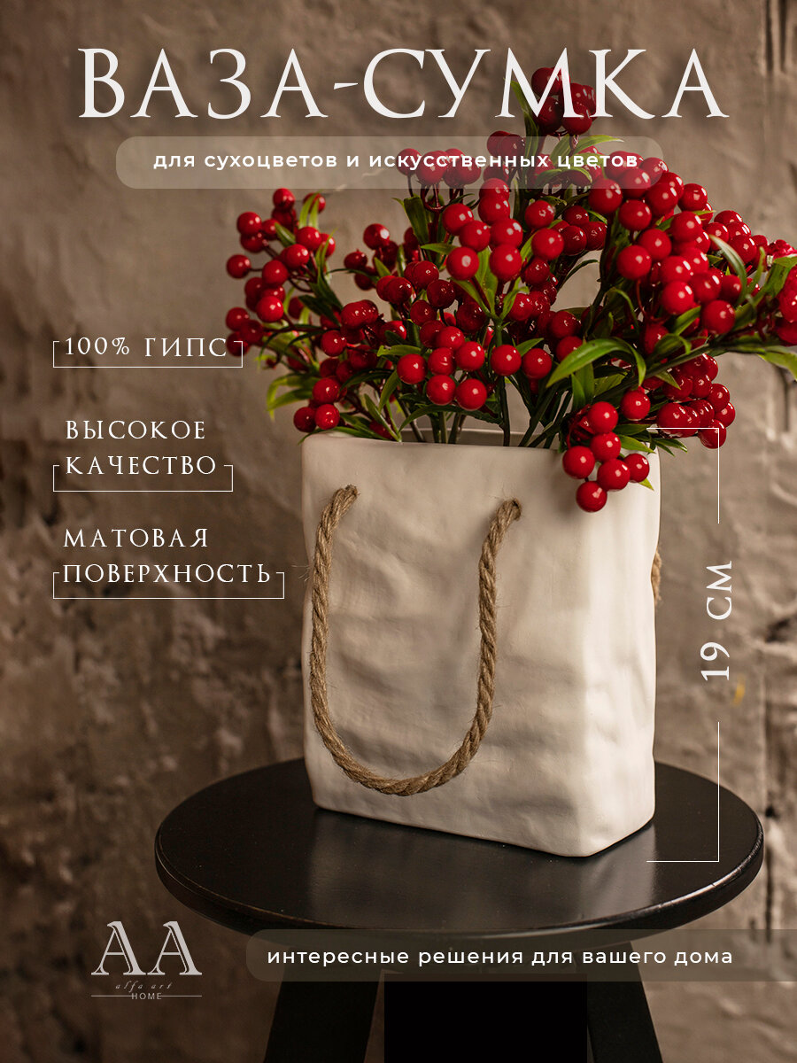 Декоративная ваза интерьерная для сухоцветов из гипса Сумка интересное: