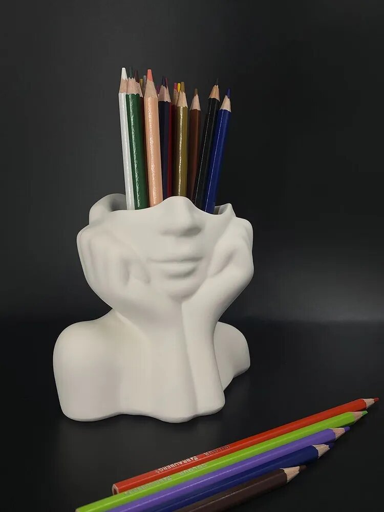 Ваза декоративная G&V "Мечтательница", 9см, гипс, настольный, белая, стабилизированный мох в комплекте интересное: