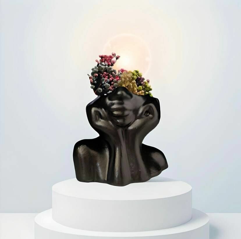 Ваза декоративная "Мечтательница" G&V, ручная работа, гипс, цвет черный, высота 9см интересное: