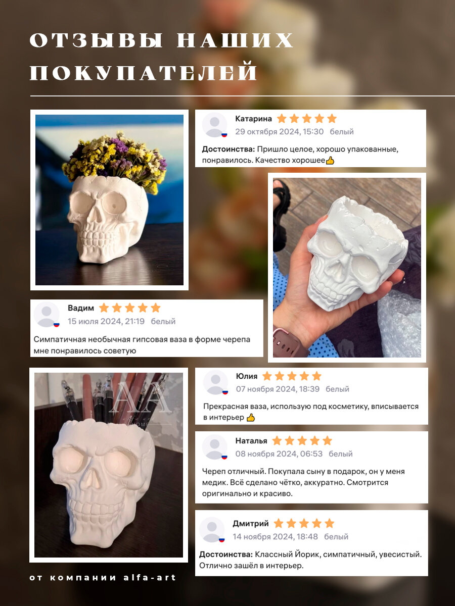 Ниже Вы можете прочитать отзывы на Ваза для сухоцветов и мха Череп, ознакомится с подробными характеристиками, посмотреть интересные обзоры и фотографии на Ваза для сухоцветов и мха Череп.