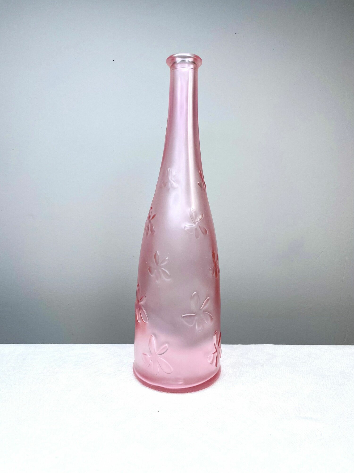 Купить Ваза бутылка декоративная с узким горлом для цветов розовая, стеклянная, 700 мл, хрустальный звон - 1 шт