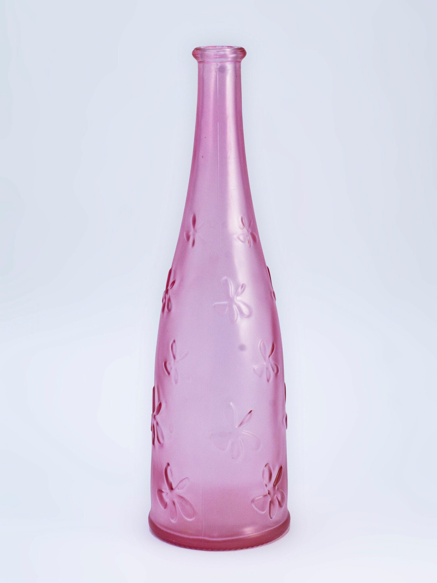 Ваза бутылка декоративная с узким горлом для цветов розовая, стеклянная, 700 мл, хрустальный звон - 1 шт