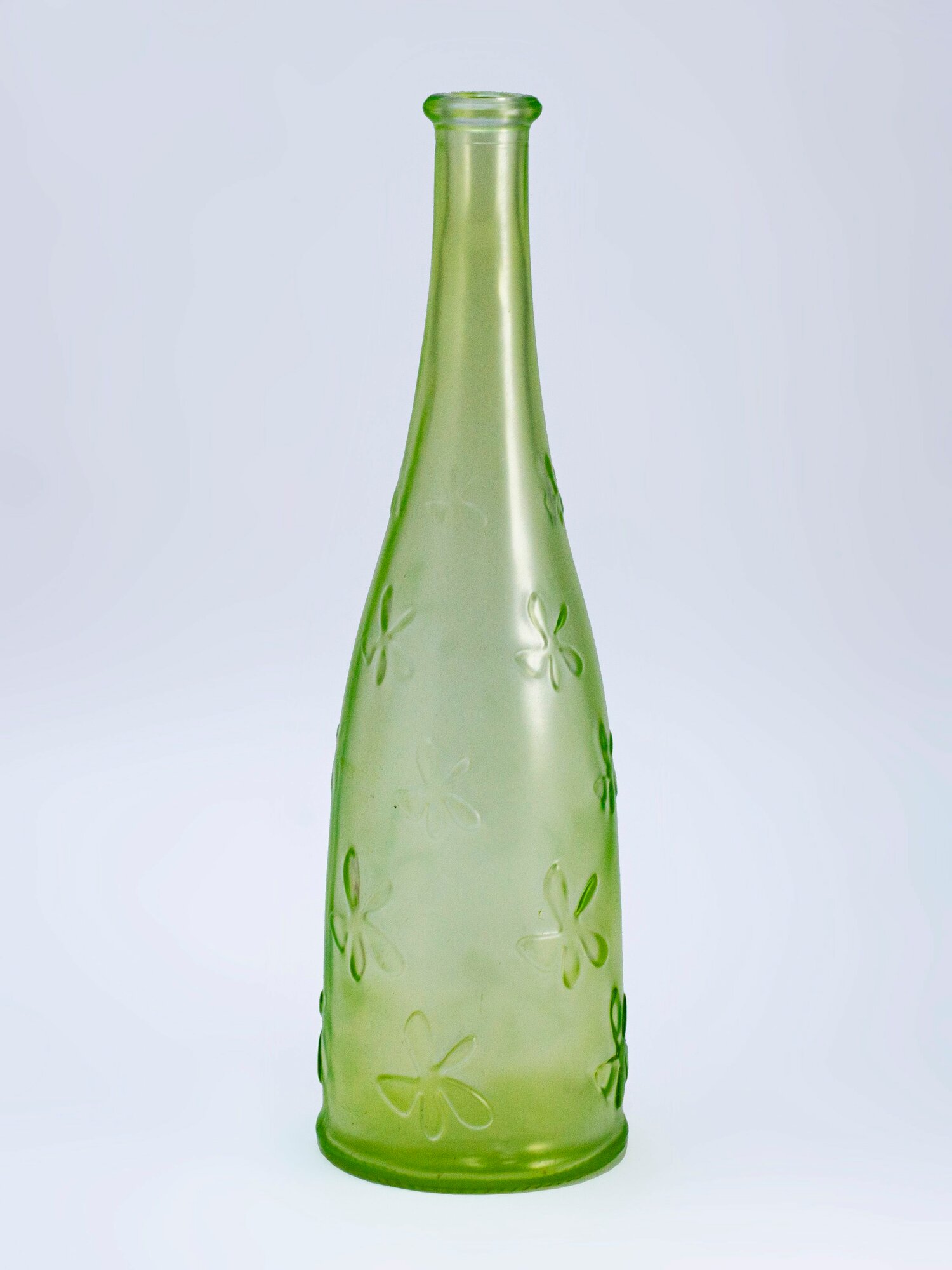 Ваза бутылка декоративная с узким горлом для цветов зеленая, стеклянная, 700 мл - 1 шт