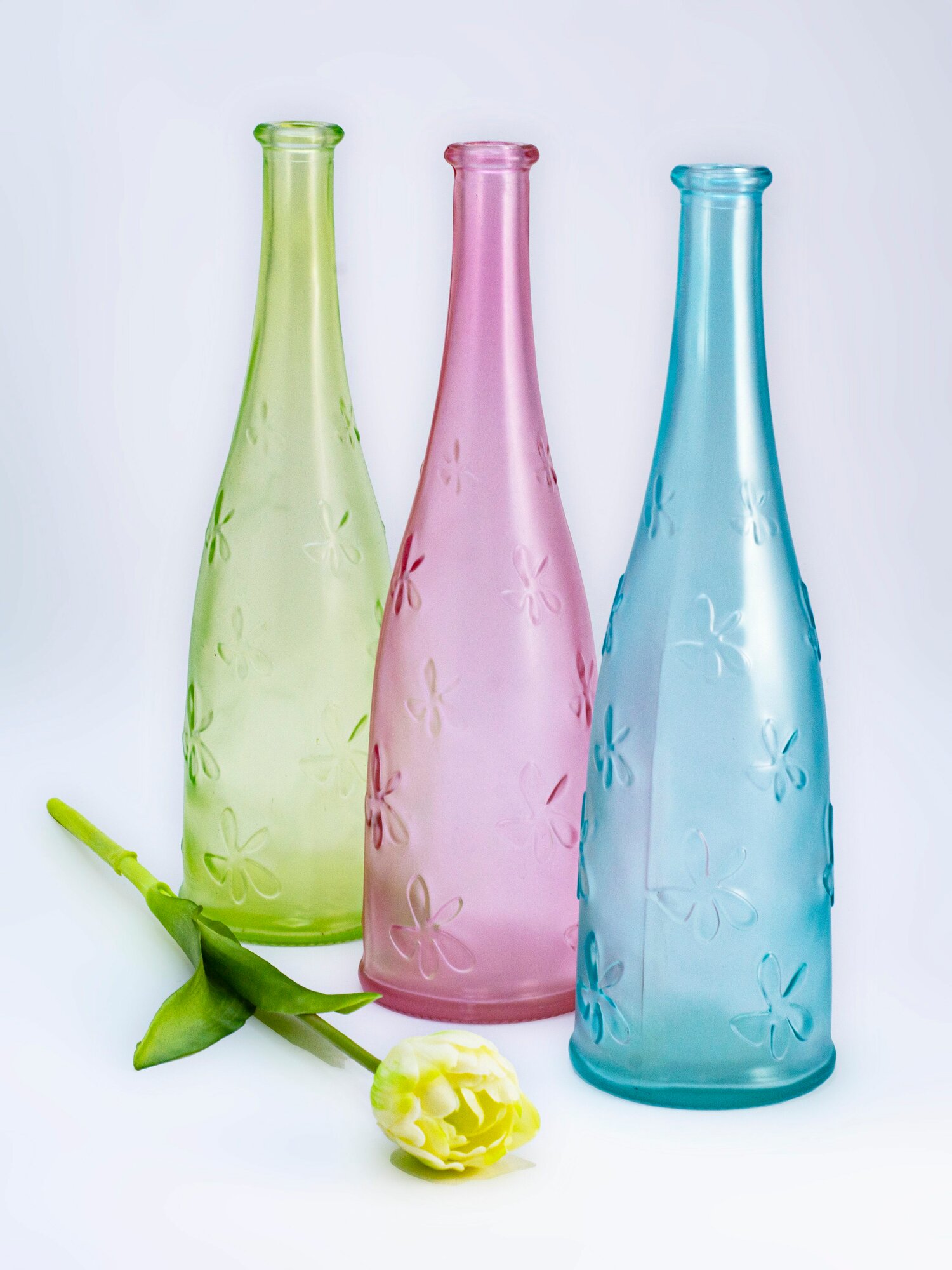 Купить Набор вазы - бутылки декоративные, с узким горлом, для цветов, розовая, голубая, зеленая, 700 мл - 3 шт