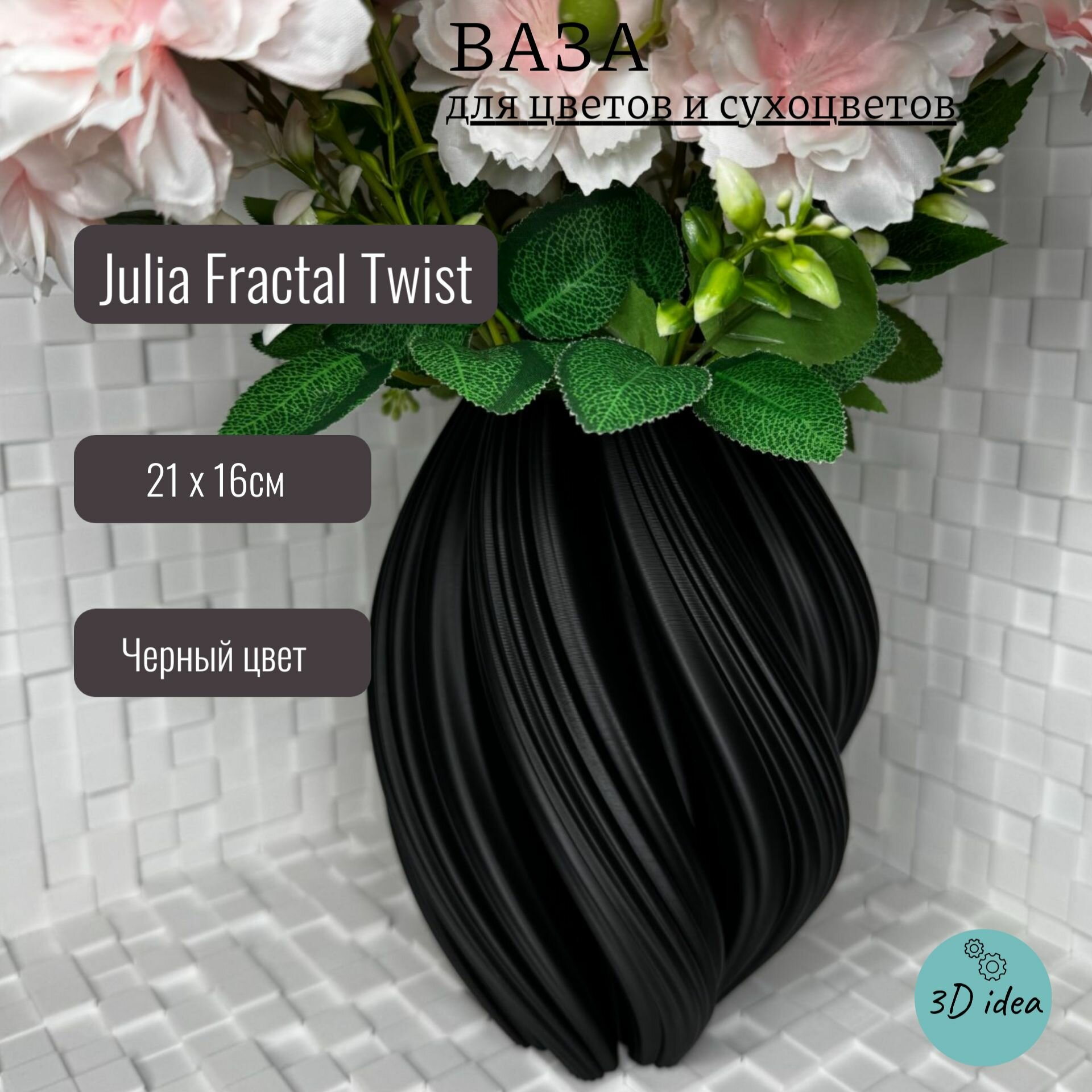 Ваза Julia Fractal Twist - 3d печатная интерьерная ваза для цветов и сухоцветов интересное: