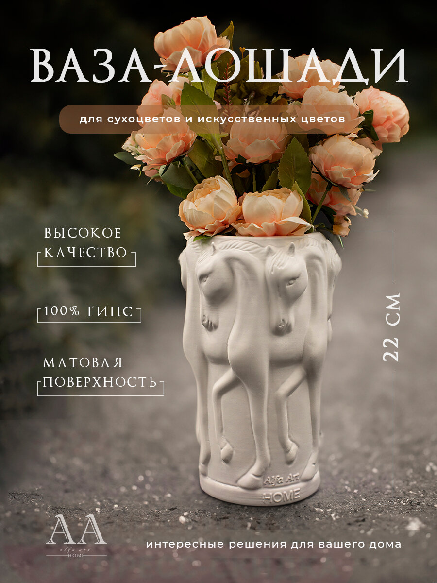 Купить Декоративная ваза для цветов сухоцветов из гипса Лошади 22 см