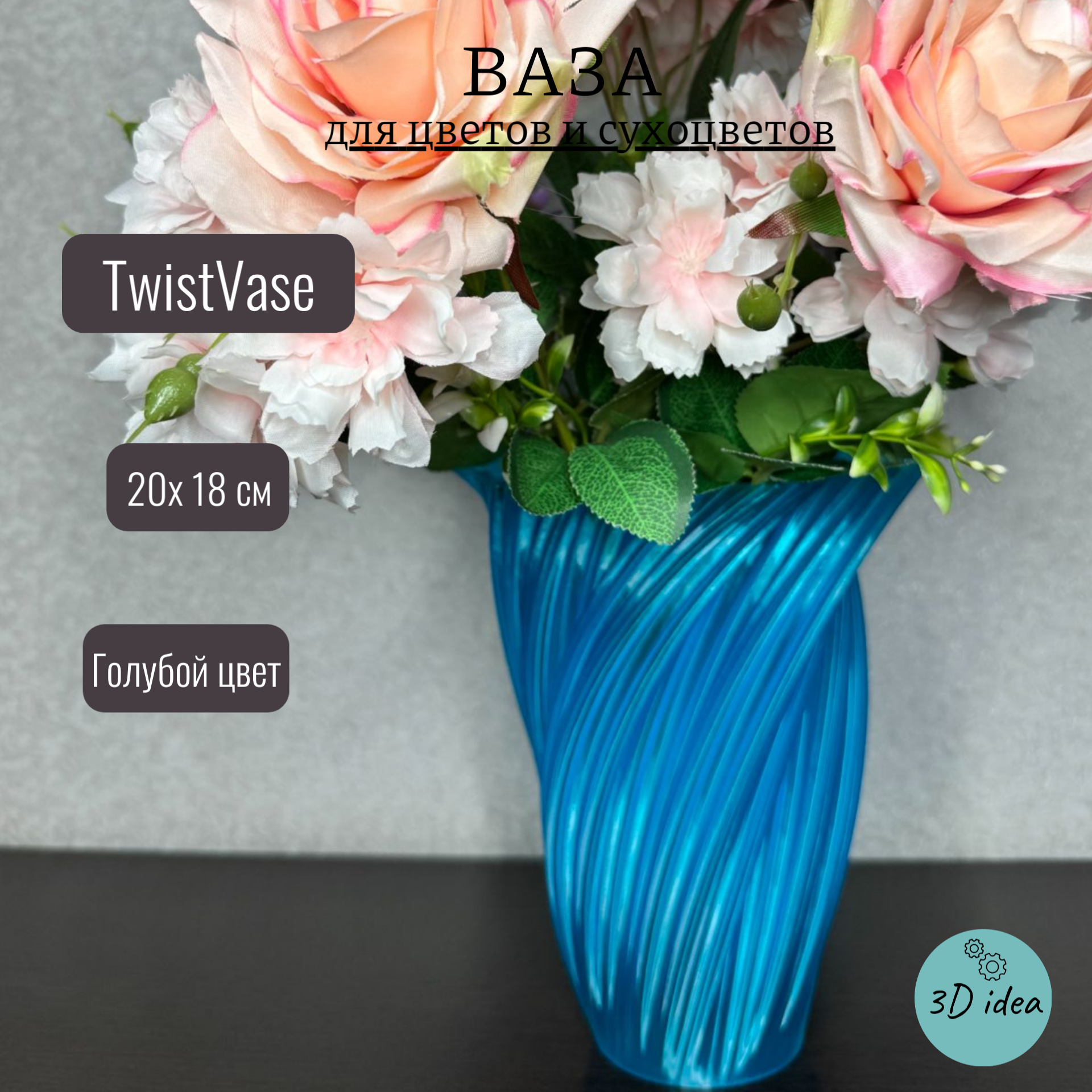 Ваза TwistVase - 3d печатная интерьерная ваза для цветов и сухоцветов интересное: