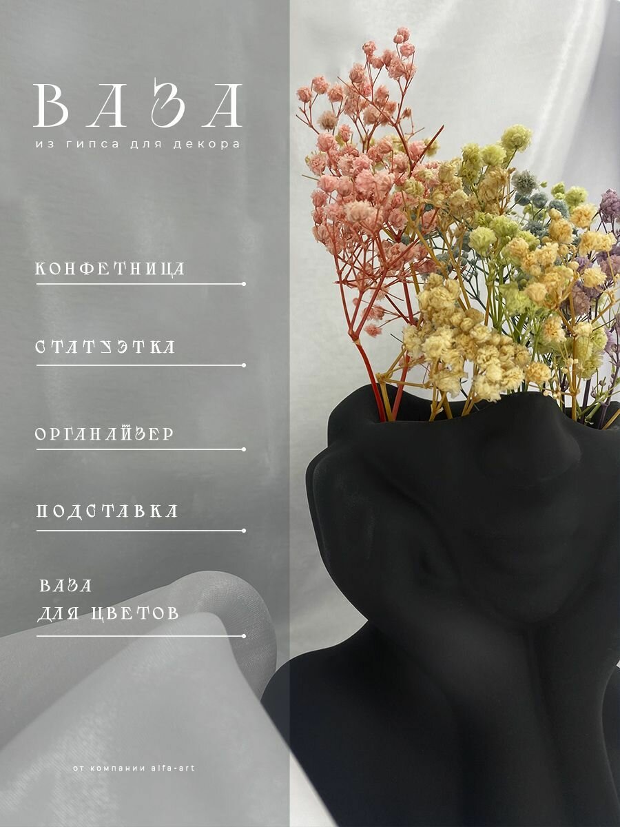 Ваза для цветов сухоцветов из гипса Мечтательница