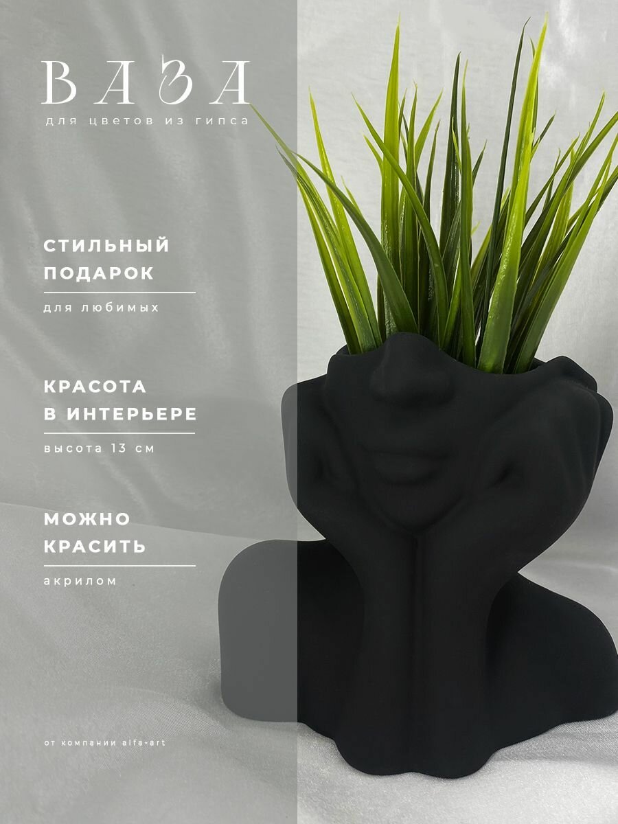 Ваза для цветов сухоцветов из гипса декоративная Девушка с подарком
