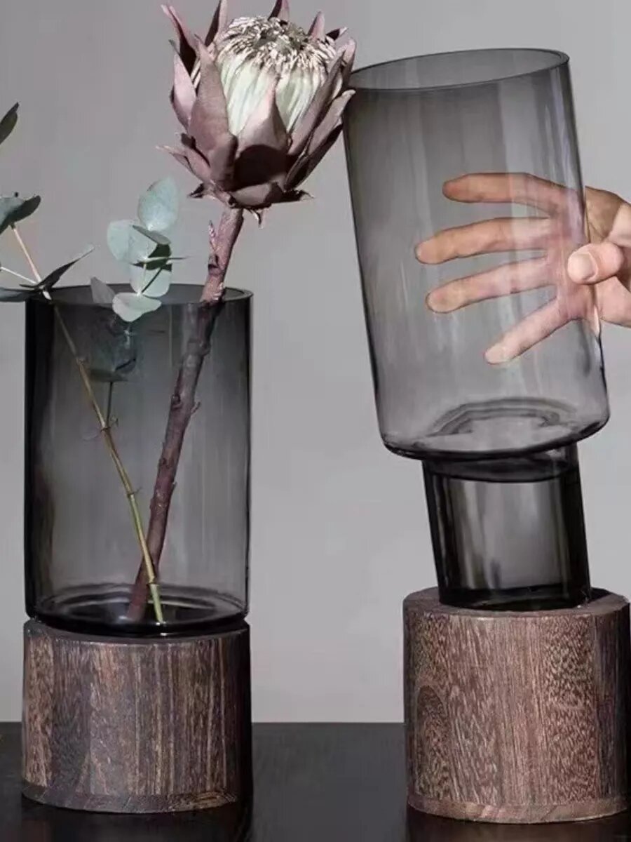 Прозрачная настольная ваза Bogacho Белла из стекла на декоративной ножке для букетов, высоких цветов и сухоцветов