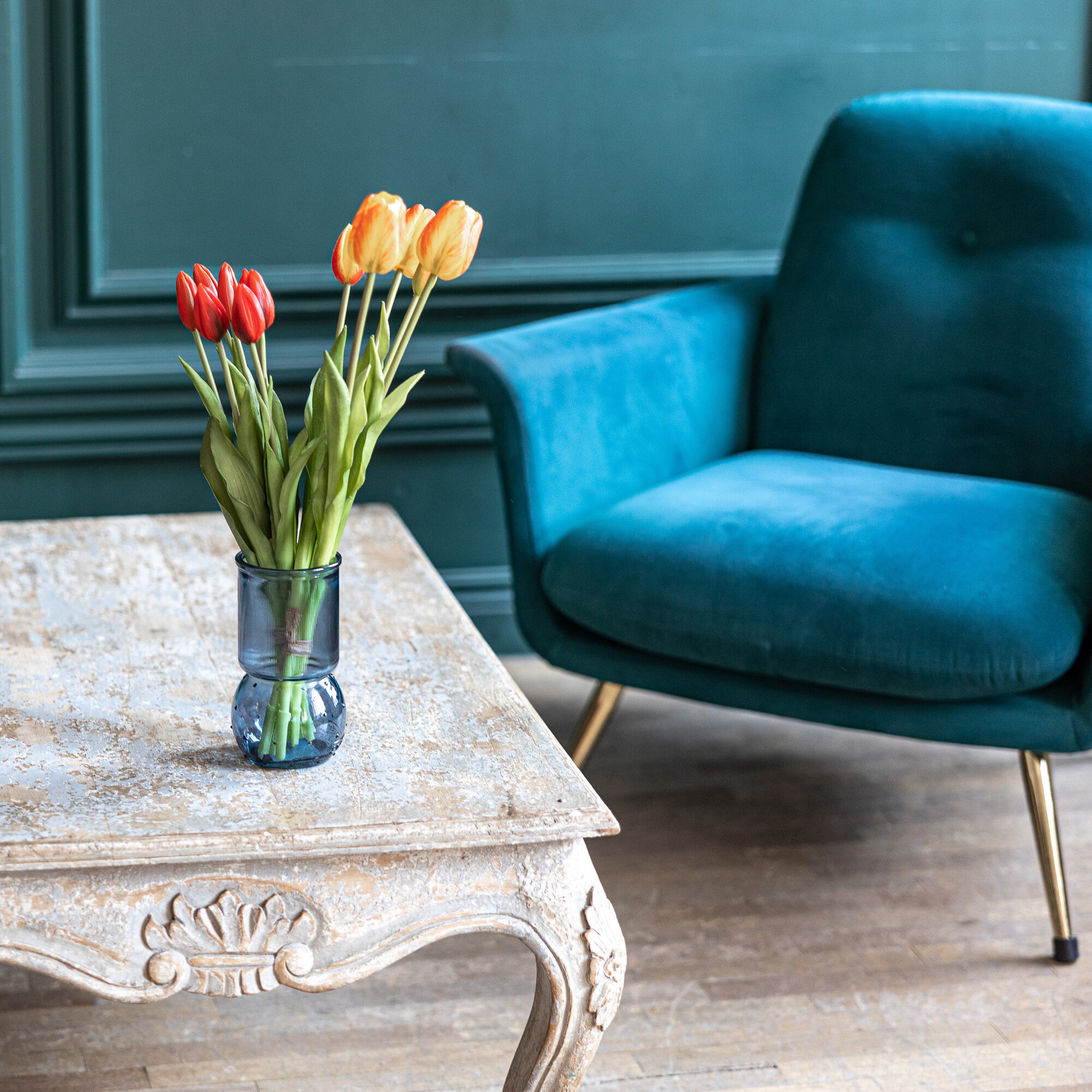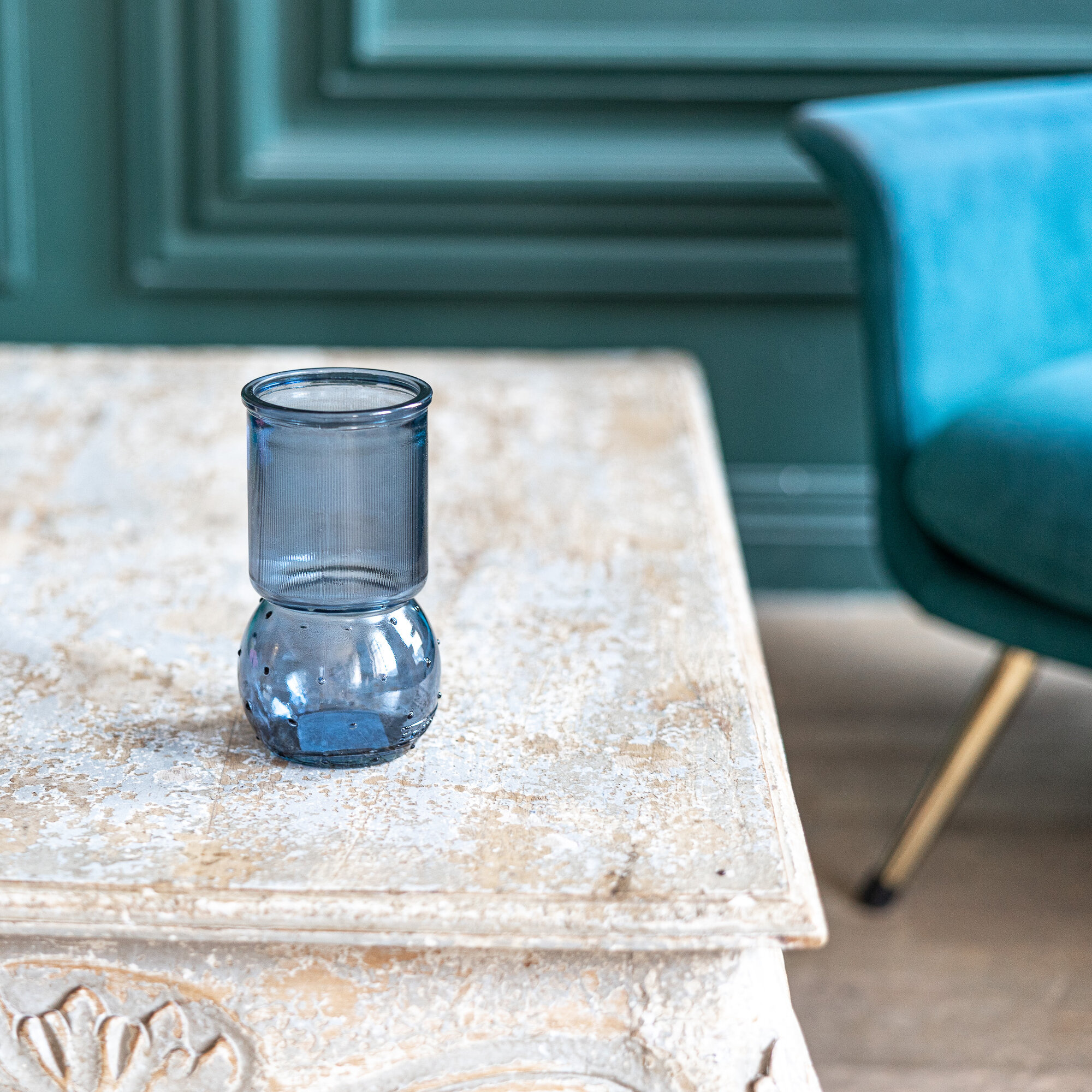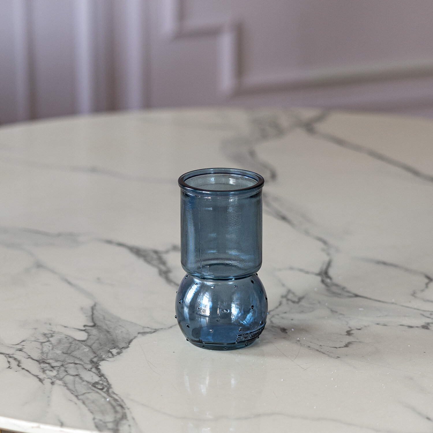 Купить Ваза стеклянная DENIA San Miguel 17 см. для цветов и сухоцветов прозрачная интерьерная Цвет: серо-синий